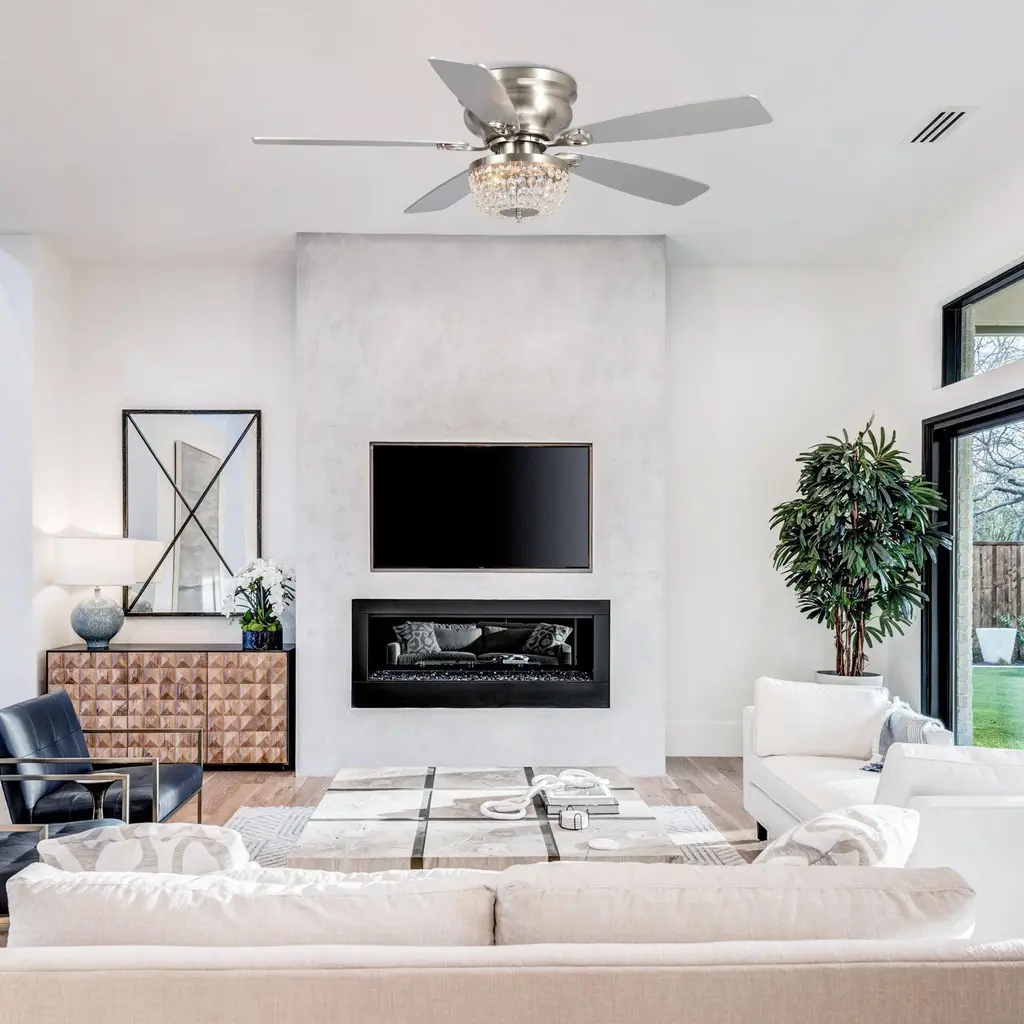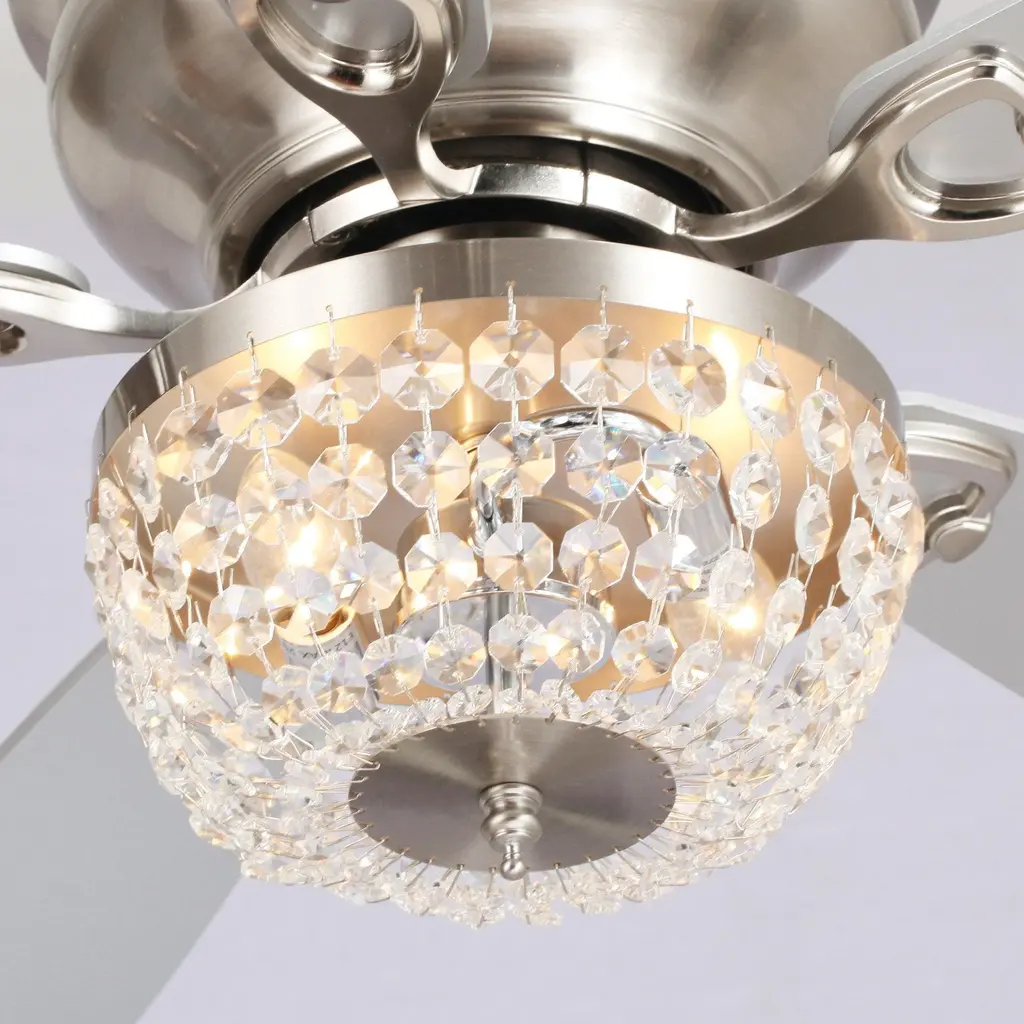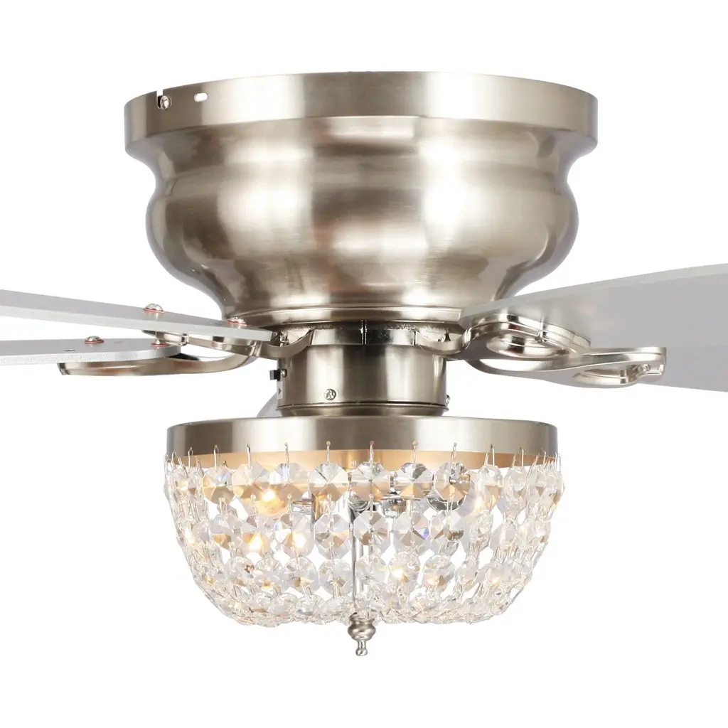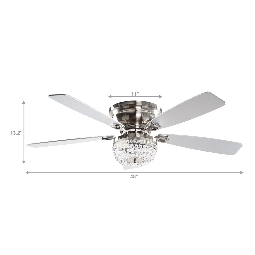 48" Modern Flush Mount Reversible Crytsal Ceiling Fan With Lighting And Remote Control - Brush Nickel