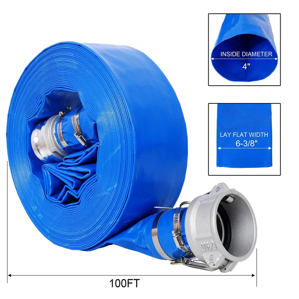 4X100ft Heavy Duty Pool Backwash Hose, Pvc With Aluminum Camlock - Blue