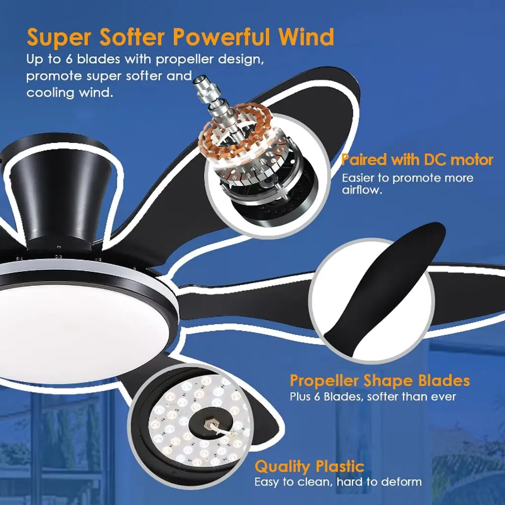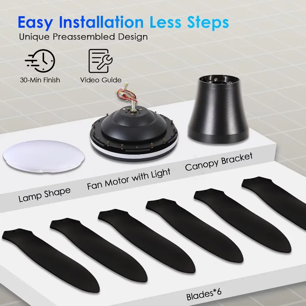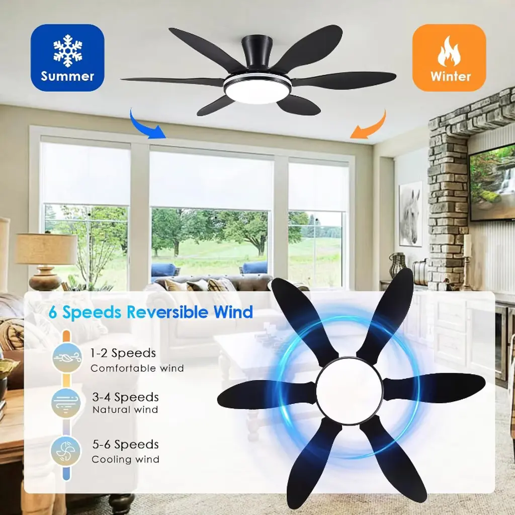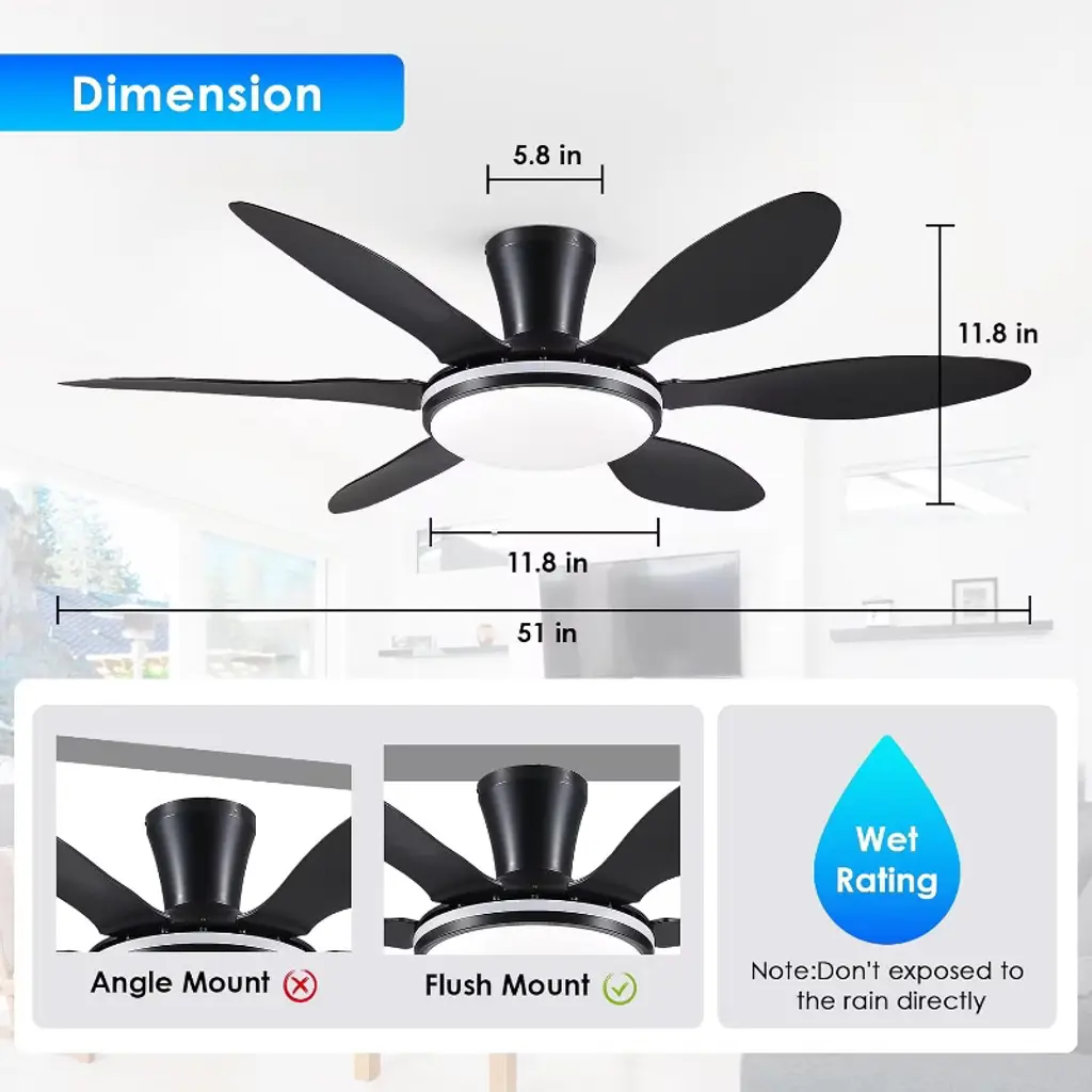 Upgrade your home comfort with this 51" low-profile ceiling fan, designed for seamless flush-mount installation in rooms with low ceilings. Its 6-blade design ensures optimal airflow with quiet, energy-efficient performance—perfect for bedrooms, living rooms, or any indoor space. The integrated 3 CCT LED light lets you customize brightness and color temperature (warm white, cool white, daylight) to match your mood. Featuring a reversible motor, this fan provides year-round comfort—cooling in summer and circulating warm air in winter. The sleek, modern design blends with any decor, while the ultra-quiet operation ensures undisturbed relaxation. Easy to install and backed by durable construction, this fan combines style, functionality, and convenience for a superior home upgrade.