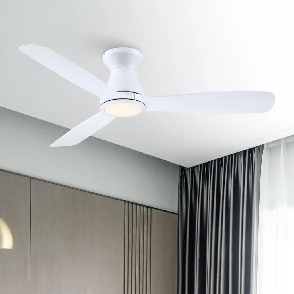 52" Ahmedabad Industrial Dc Motor Flush Mount Reversible Ceiling Fan With Led Lighting And Remote Control - White