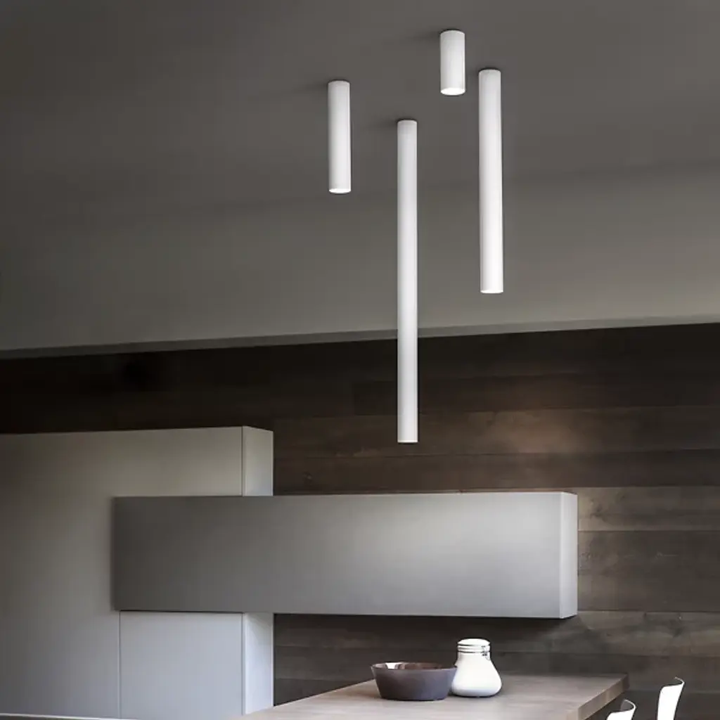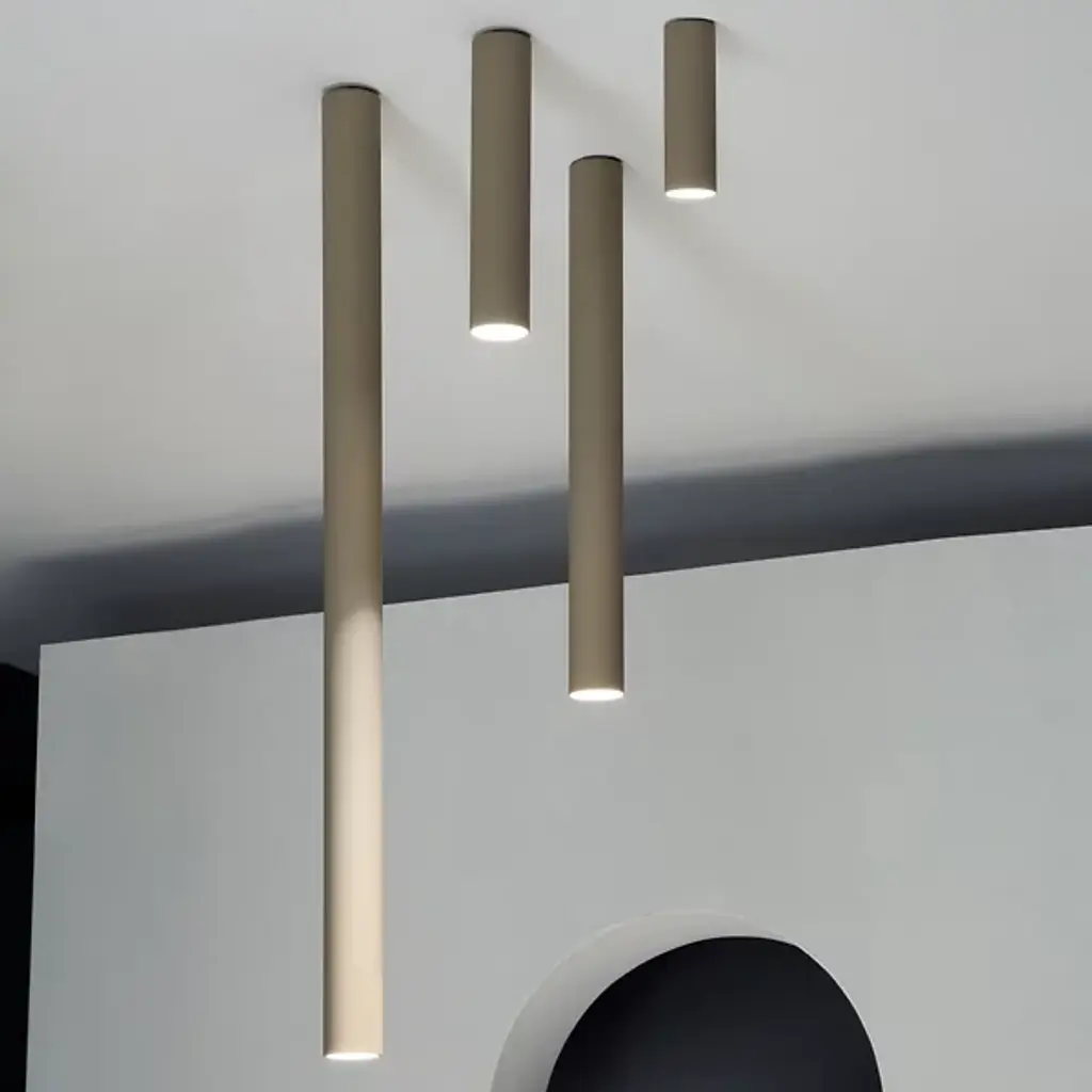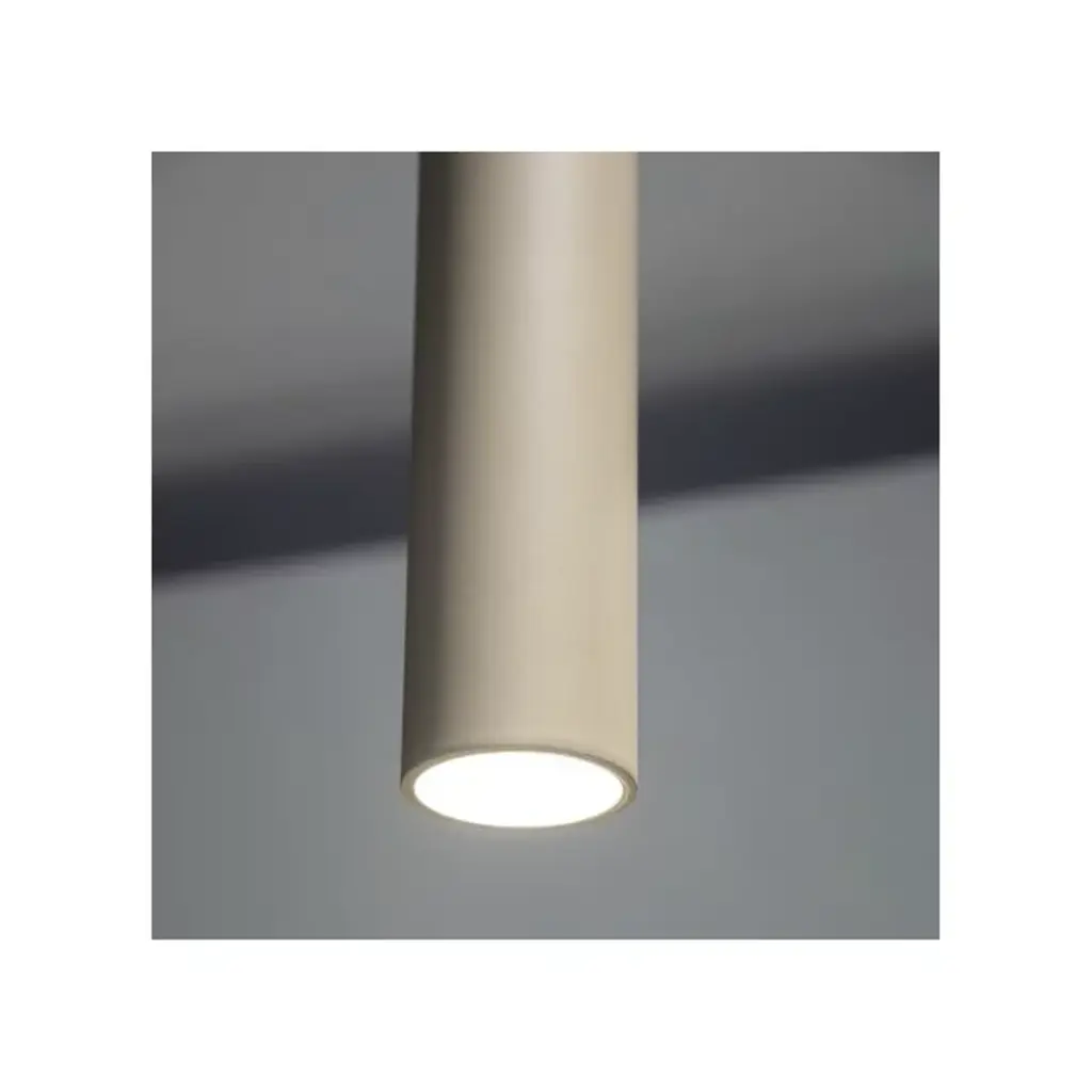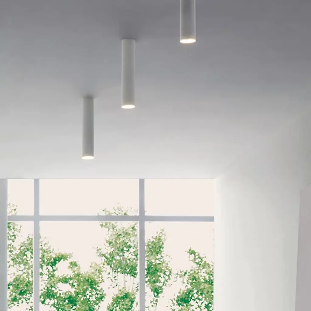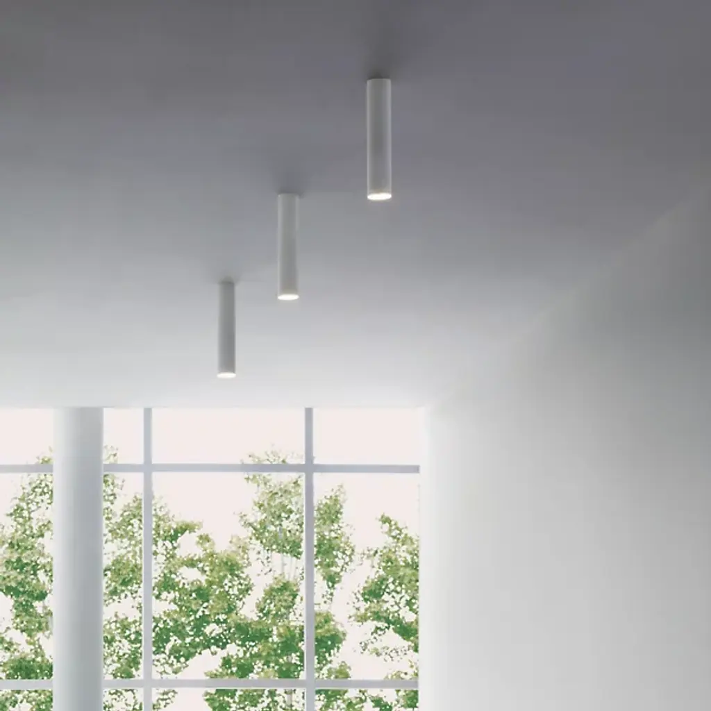 The LODES A-Tube Flushmount features a slender cylinder of metal funneling a bright spot light below. Exceedingly minimalistic, the simple construction is a great template when imagining the space around the fixture, making the decorative possibilities endless. The unassuming design is surprisingly dynamic; with varying sizes available, the A-tube can be grouped closely together or dispersed around the ceiling in any composition for the desired light effect.