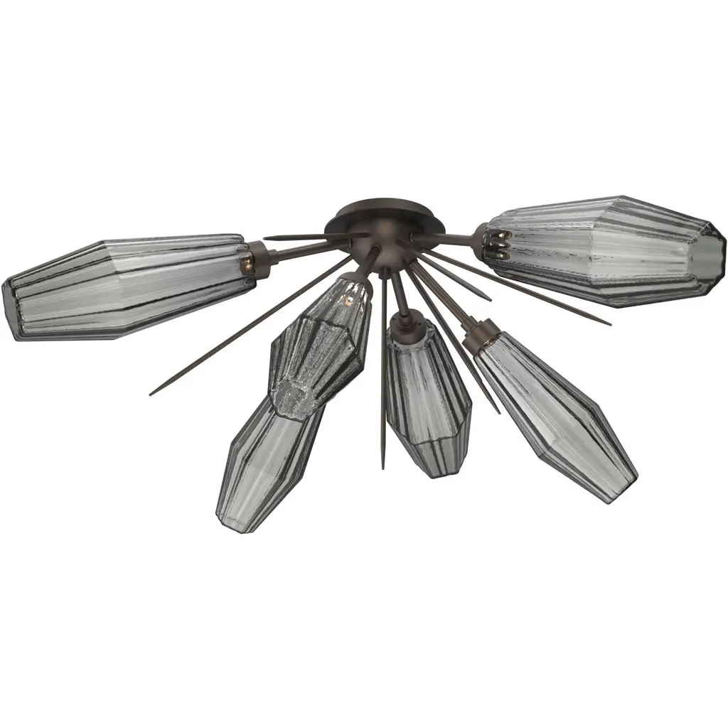 Aalto 6-Light Flush Mount-Graphite-Optic Rib Blown Glass - Smoke-LED