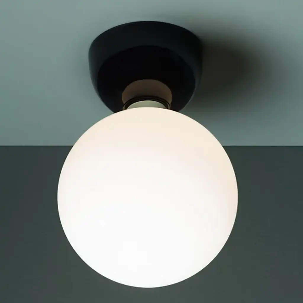 Imbue your living spaces with subtle allure courtesy of the Aballs A II Flushmount by Parachilna, meticulously crafted to exude a retro-modern aesthetic through its captivating layered design. Conceived by the visionary Jaime Hayon, this fixture gracefully emerges from a sleek metal ceiling mount anchored by a stepped circular base. Its rounded ceramic body elegantly tapers inward, divided from the shade by a small metal collar that supports a meticulously crafted glass sphere diffuser, unveiling the brilliance of the inner illumination. The fusion of luxurious materials and minimalist design elements emanates timeless sophistication, making it an exquisite addition to any interior setting.