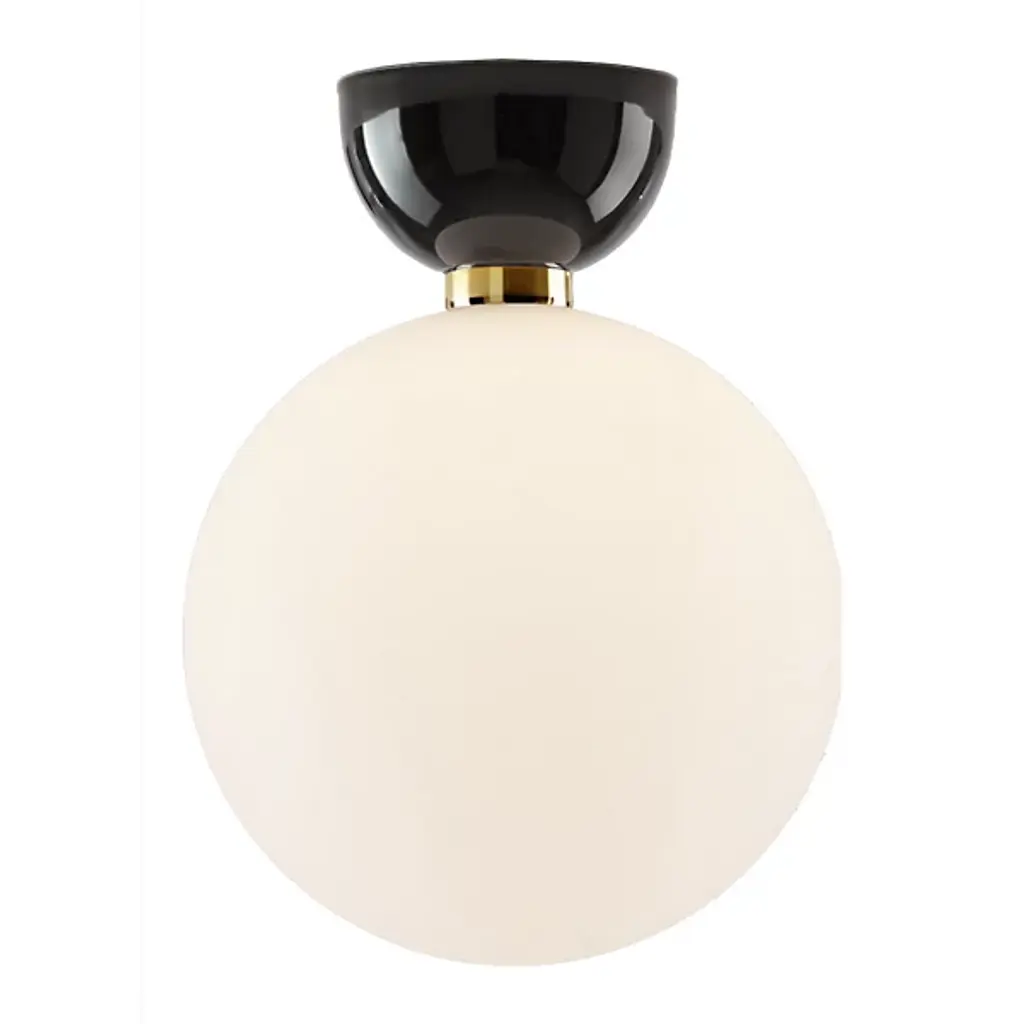 Imbue your living spaces with subtle allure courtesy of the Aballs A II Flushmount by Parachilna, meticulously crafted to exude a retro-modern aesthetic through its captivating layered design. Conceived by the visionary Jaime Hayon, this fixture gracefully emerges from a sleek metal ceiling mount anchored by a stepped circular base. Its rounded ceramic body elegantly tapers inward, divided from the shade by a small metal collar that supports a meticulously crafted glass sphere diffuser, unveiling the brilliance of the inner illumination. The fusion of luxurious materials and minimalist design elements emanates timeless sophistication, making it an exquisite addition to any interior setting.