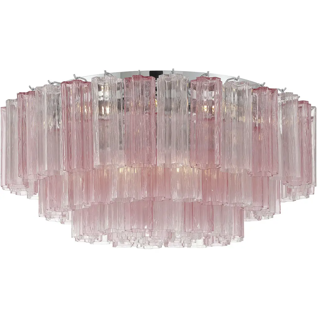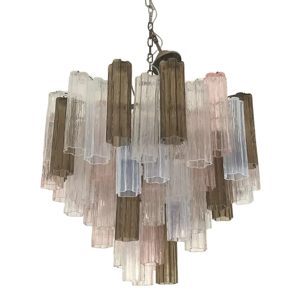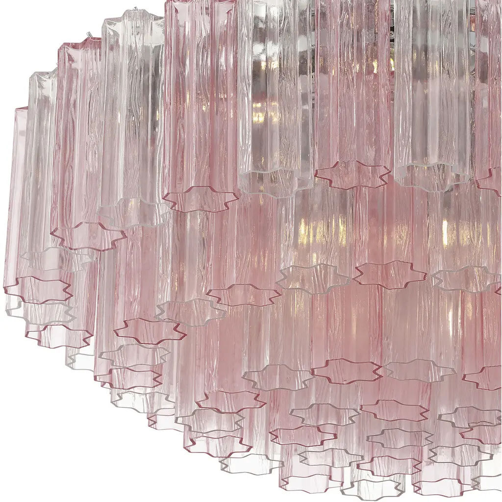 The captivating Addis Lighting Collection is a modern-day interpretation of the iconic mid-century Tronchi chandelier. Inspired by its predecessor's sleek lines and geometric shapes, the Addis features a polished Chrome or Aged Brass metal frame that exudes sophistication and style. Its unique design showcases transparent tiers of textured Tronchi glass tubes, forming a mesmerizing 5-point rounded star shape. Choose from a range of glass colors, including clear, amber, smoke, and white, or the stunning Autumn option, which features a captivating multicolor disposition of amber, clear, and smoke Tronchi glass. The Addis Lighting Collection offers various sizes and finishes, allowing you to find the perfect fit for your space while adding a touch of timeless elegance.