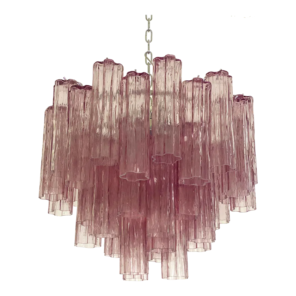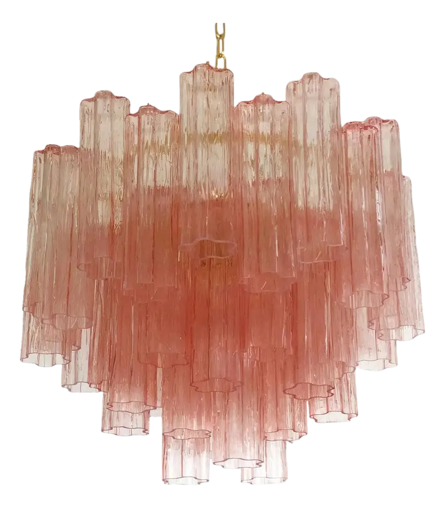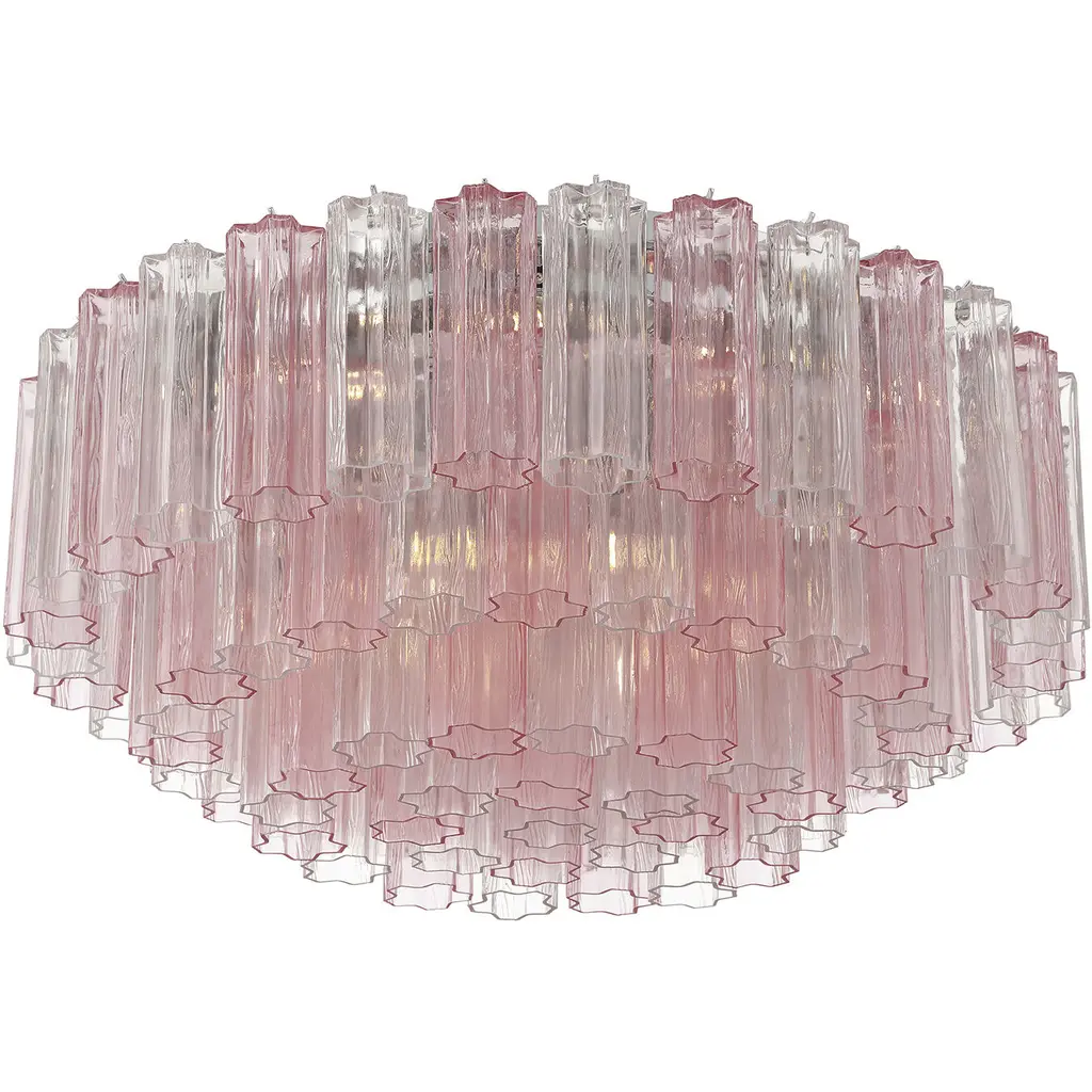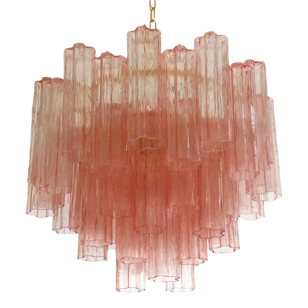 The captivating Addis Lighting Collection is a modern-day interpretation of the iconic mid-century Tronchi chandelier. Inspired by its predecessor's sleek lines and geometric shapes, the Addis features a polished Chrome or Aged Brass metal frame that exudes sophistication and style. Its unique design showcases transparent tiers of textured Tronchi glass tubes, forming a mesmerizing 5-point rounded star shape. Choose from a range of glass colors, including clear, amber, smoke, and white, or the stunning Autumn option, which features a captivating multicolor disposition of amber, clear, and smoke Tronchi glass. The Addis Lighting Collection offers various sizes and finishes, allowing you to find the perfect fit for your space while adding a touch of timeless elegance.