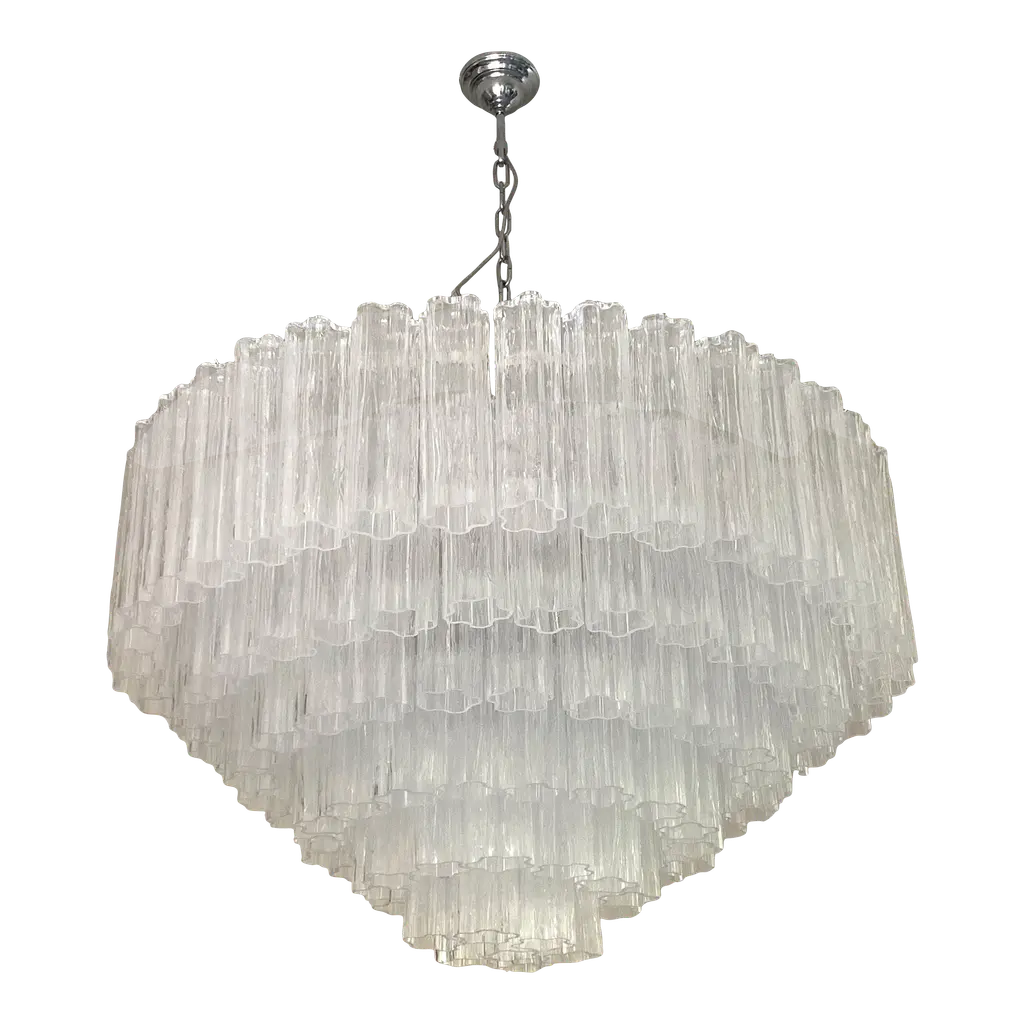The Addis Flushmount from Crystorama offers a contemporary take on the classic mid-century Tronchi chandelier, blending timeless elegance with modern design. Featuring a sleek metal frame, it exudes sophistication while showcasing transparent tiers of textured Tronchi glass tubes. These layered elements form a striking five-point rounded star shape, creating visual depth and a captivating play of light. This flushmount is ideal for adding bold style and architectural interest to any modern or transitional interior space.