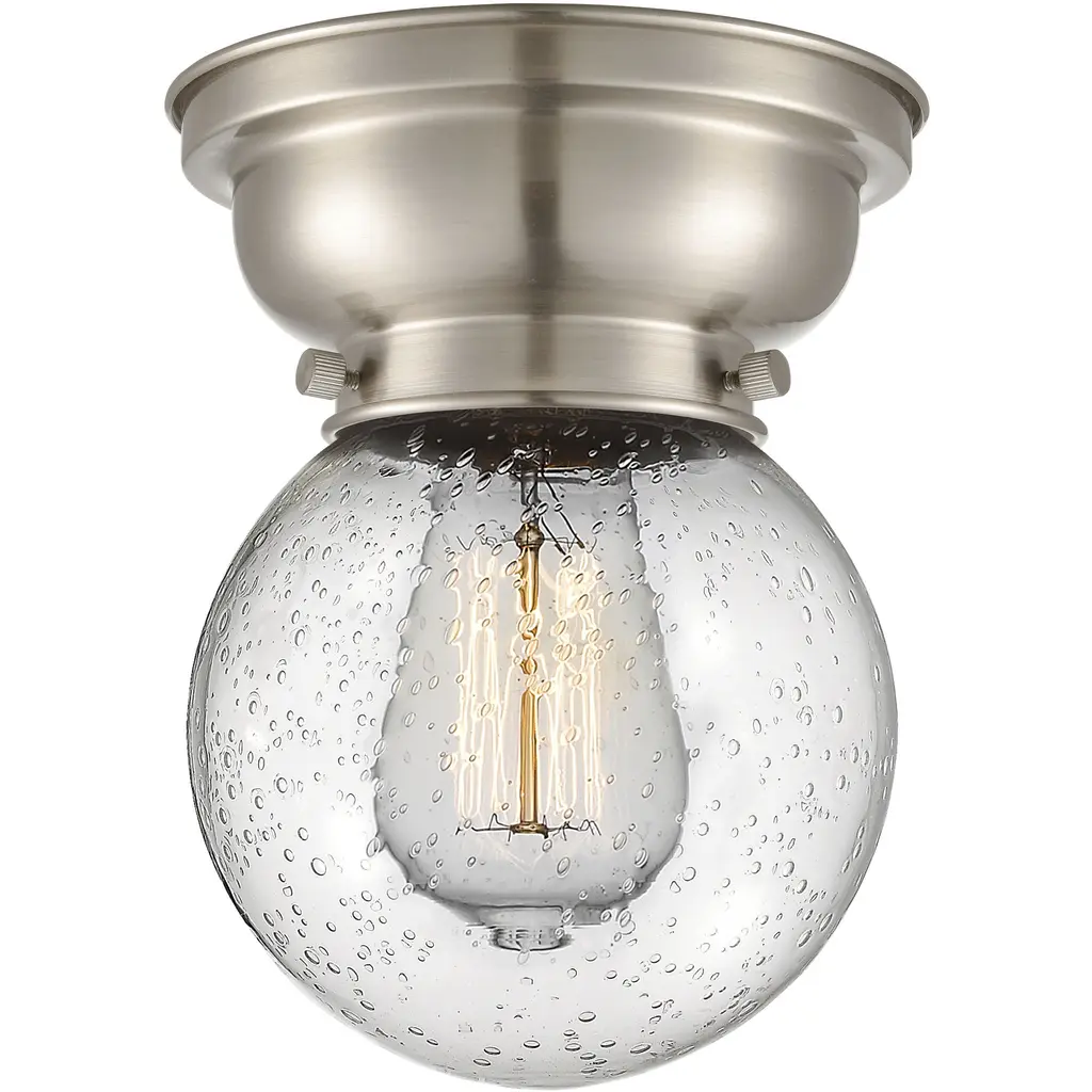 Aditi Beacon 1 Light 6 Inch Oil Rubbed Bronze Flush Mount Ceiling Light In Seedy Glass, Aditi