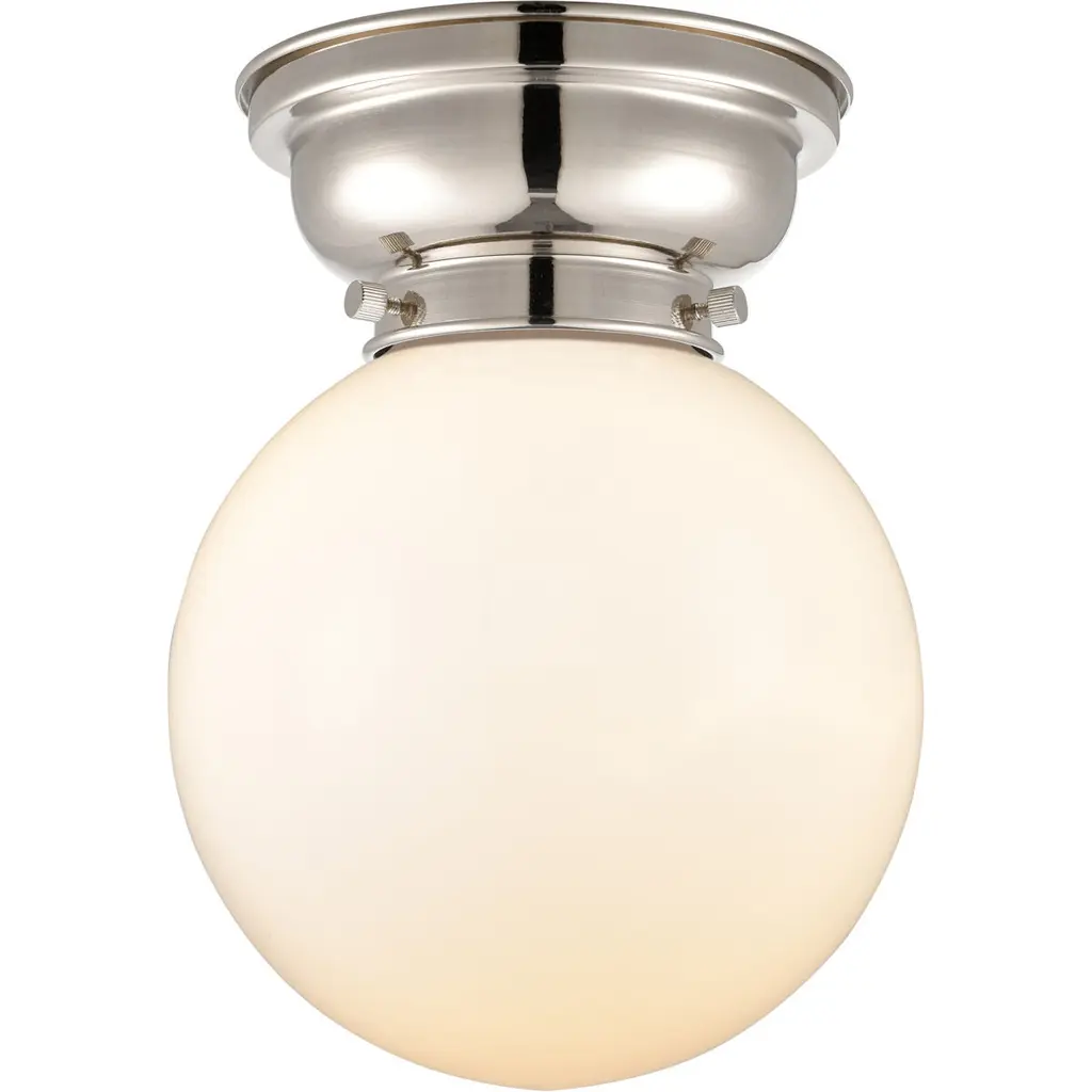Aditi Large Beacon 1 Light 8 Inch Brushed Satin Nickel Flush Mount Ceiling Light In Matte White Glass, Aditi