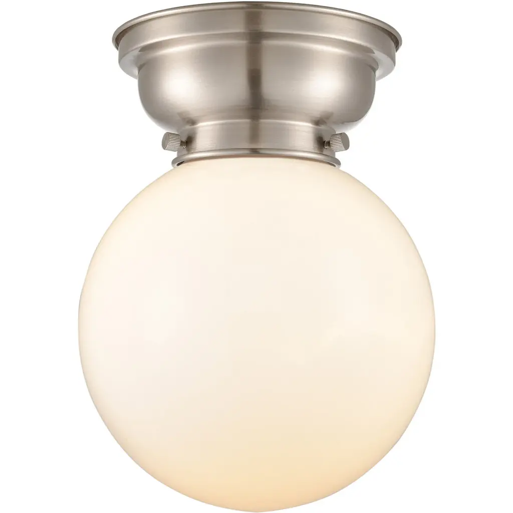 Aditi Large Beacon 1 Light 8 Inch Polished Chrome Flush Mount Ceiling Light In Matte White Glass, Aditi