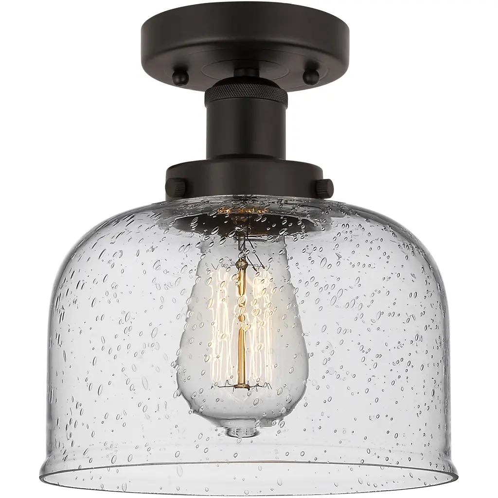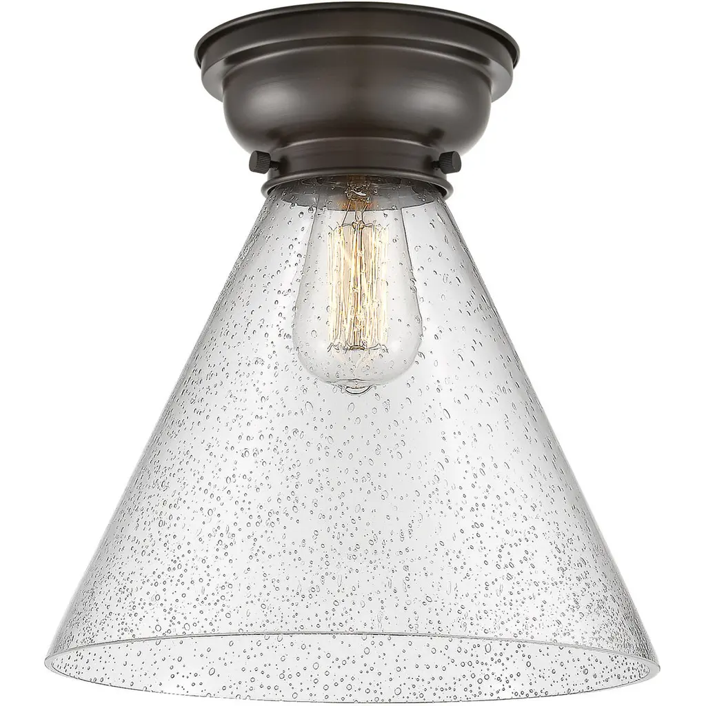 Aditi Large Cone 1 Light 8 Inch Matte Black Flush Mount Ceiling Light In Seedy Glass, Aditi
