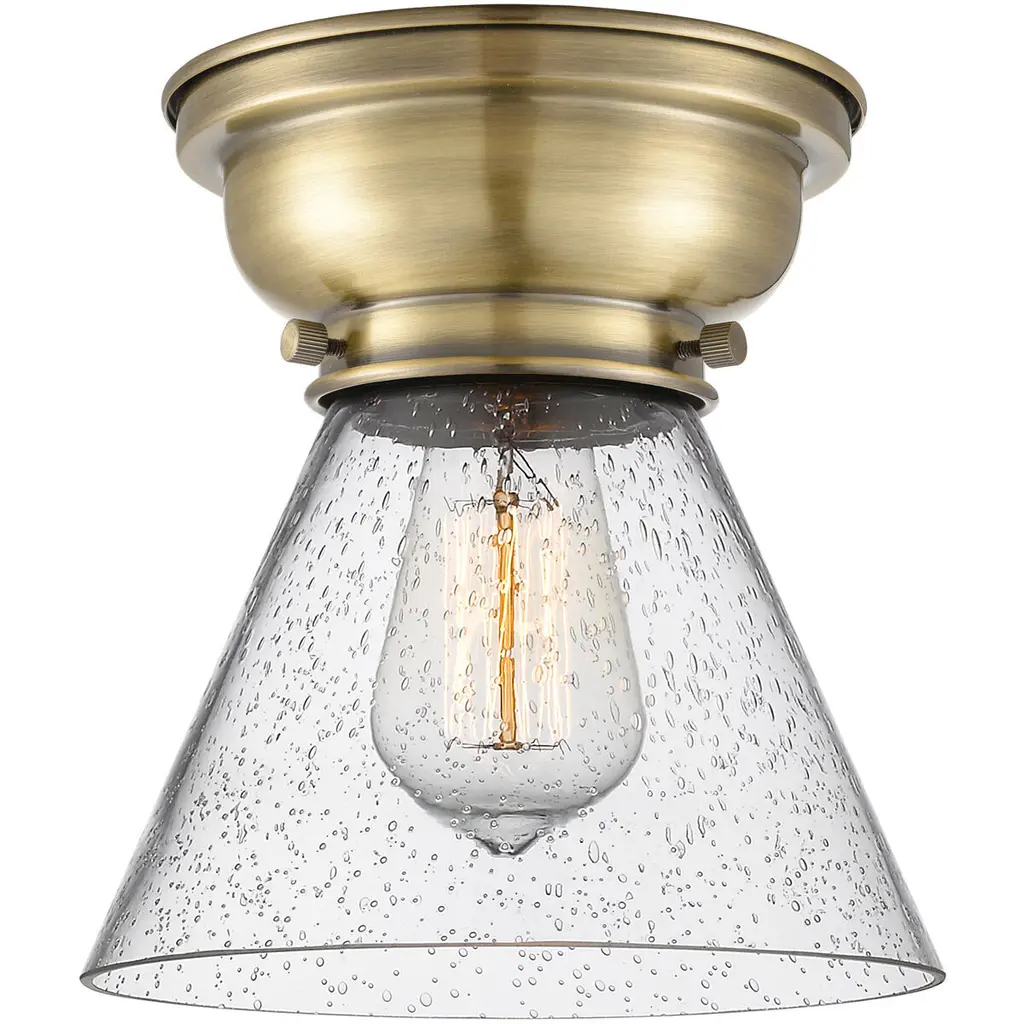 Aditi Large Cone 1 Light 8 Inch Oil Rubbed Bronze Flush Mount Ceiling Light In Seedy Glass, Aditi