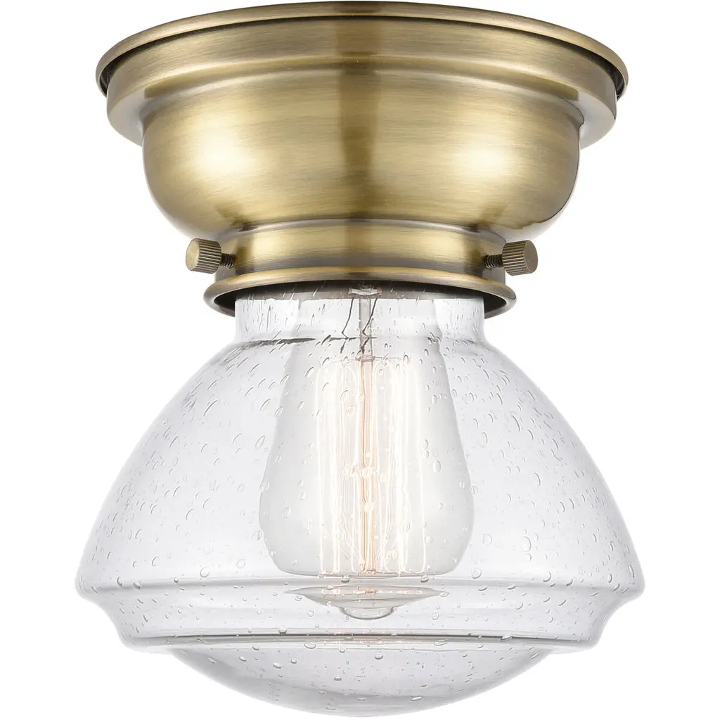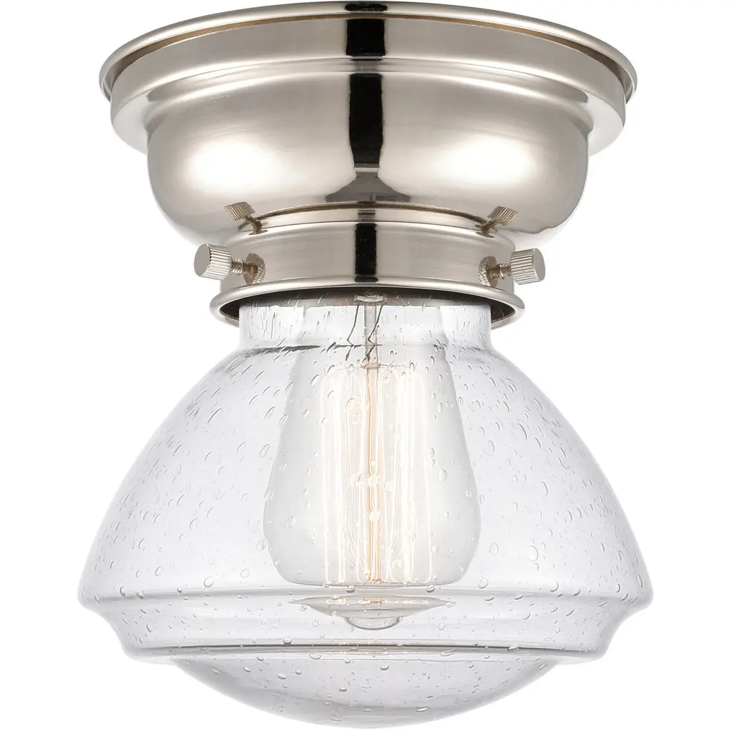 Aditi Olean 1 Light 7 Inch Brushed Satin Nickel Flush Mount Ceiling Light In Seedy Glass, Aditi