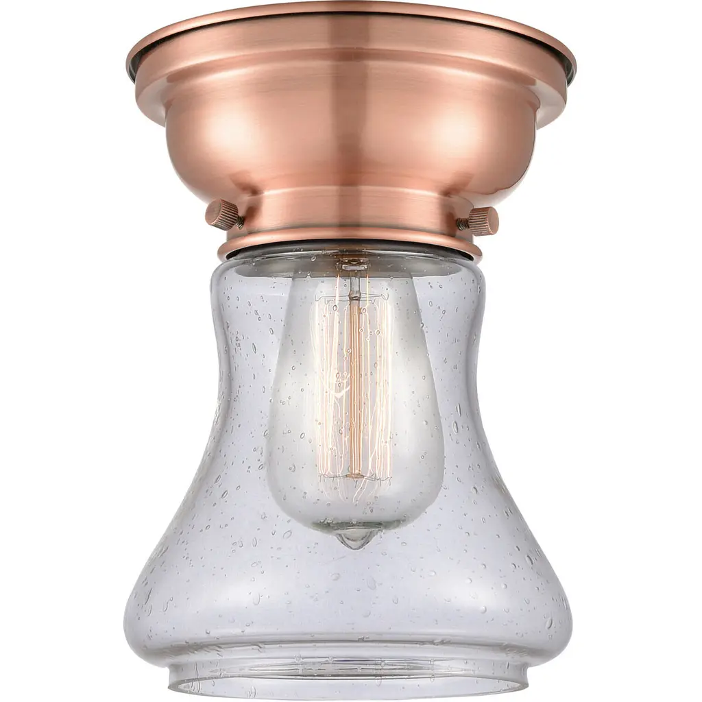 Aditi Small Canton 1 Light 6 Inch Antique Copper Flush Mount Ceiling Light In Seedy Glass, Aditi