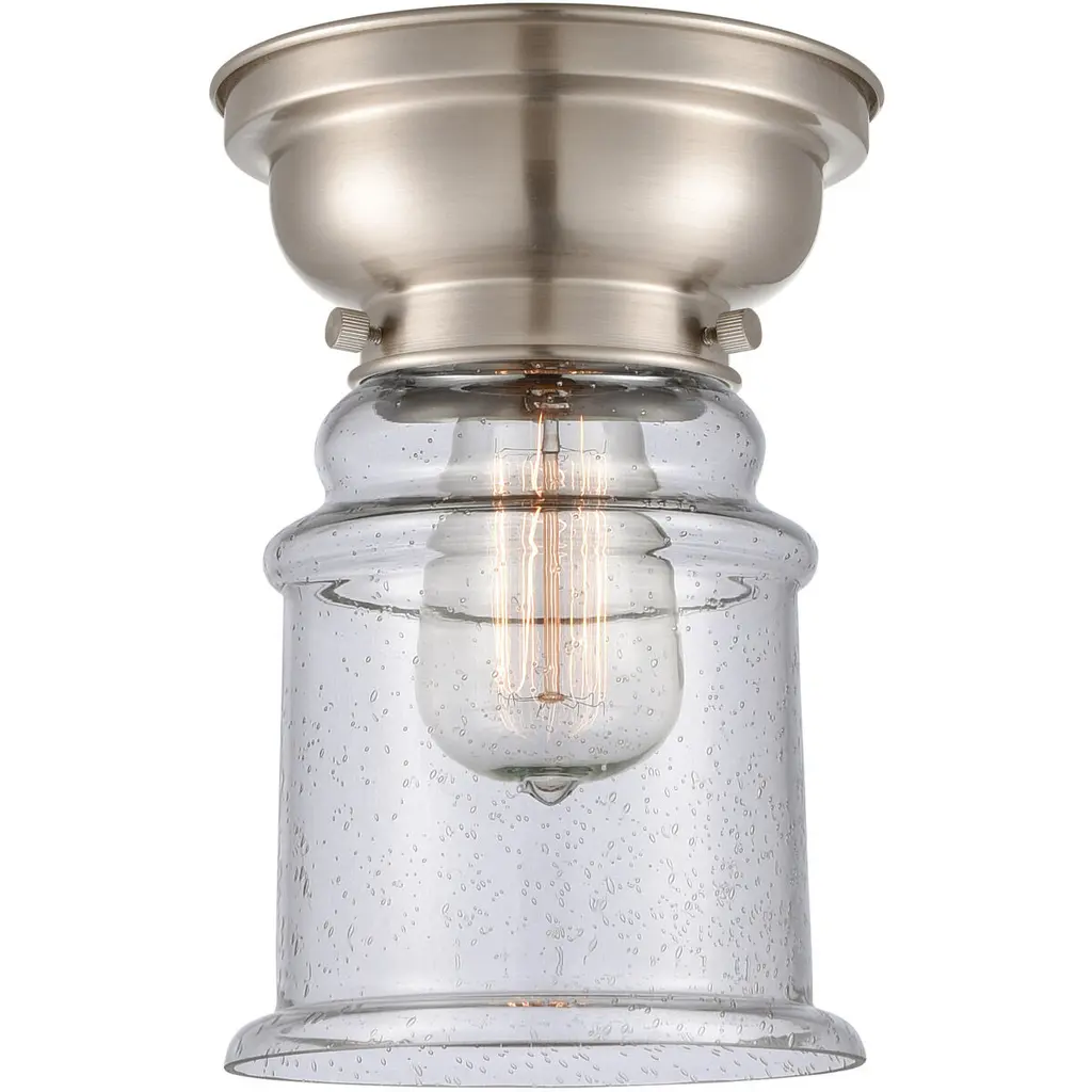 Aditi Small Canton 1 Light 6 Inch Brushed Satin Nickel Flush Mount Ceiling Light In Seedy Glass, Aditi