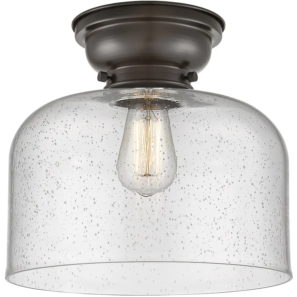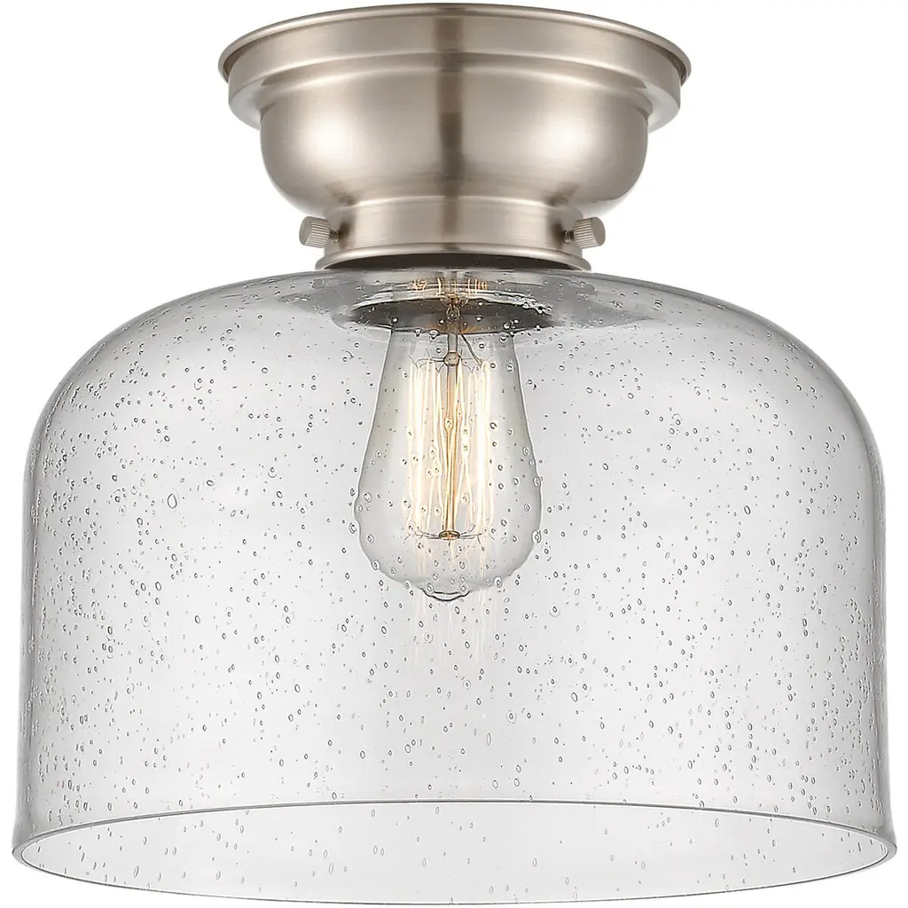 Aditi X-Large Bell 1 Light 12 Inch Polished Nickel Flush Mount Ceiling Light In Seedy Glass, Aditi