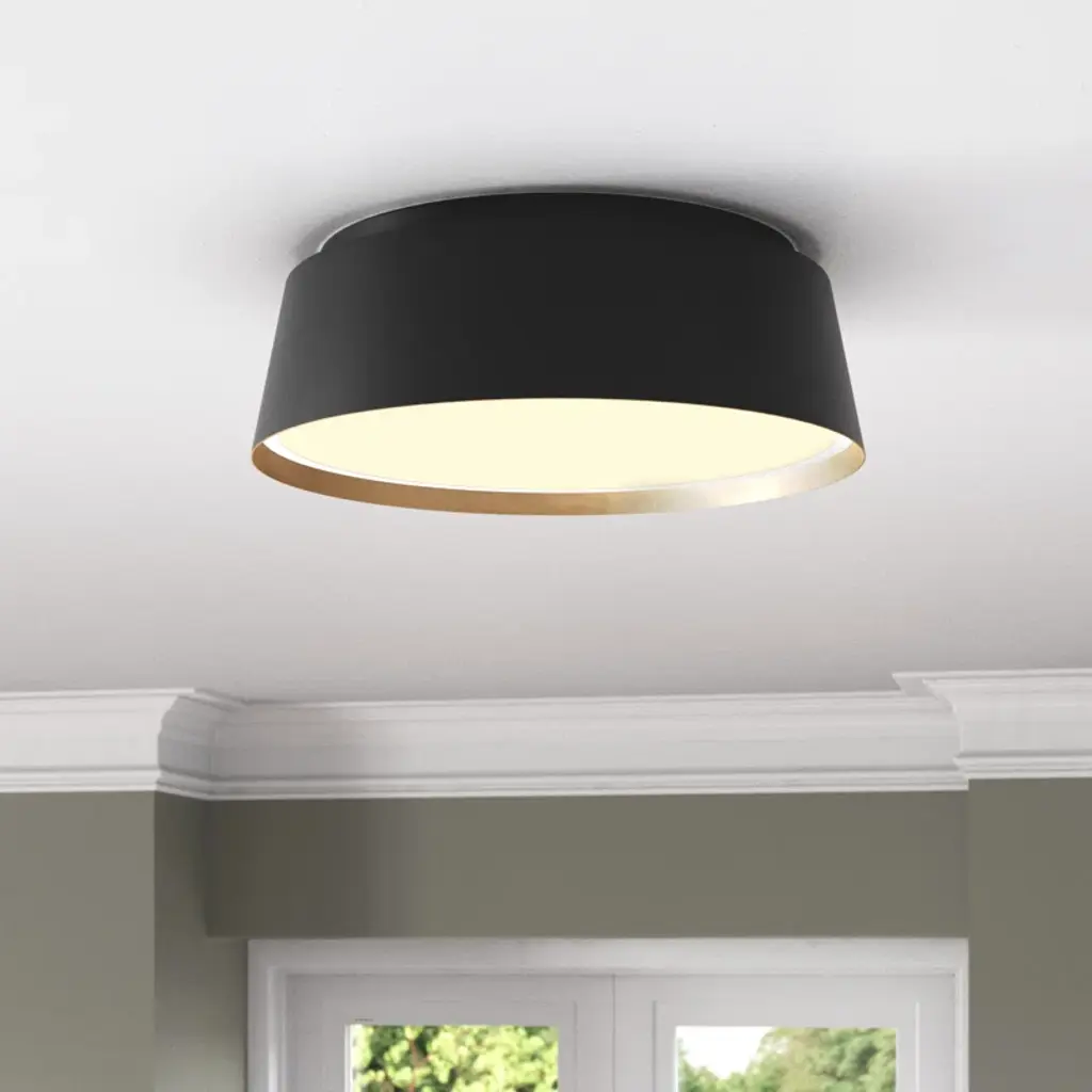 The Joss & Main Adriatic three-light flush mount fixture provides abundant light to your home while adding style and interest. The Adriatic is contemporary with time-honored appeal in a low profile, yet large-scale silhouette that exudes understated elegance. Available in exterior finish, versions utilize an artisanal, hand-applied treatment of real gold leaf that lines the interior of the shade while a silkscreen glass diffuser softens the illumination.