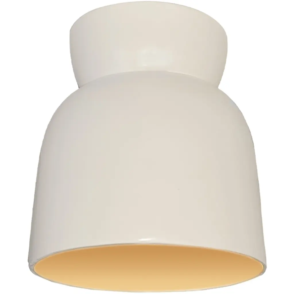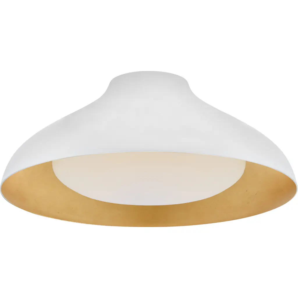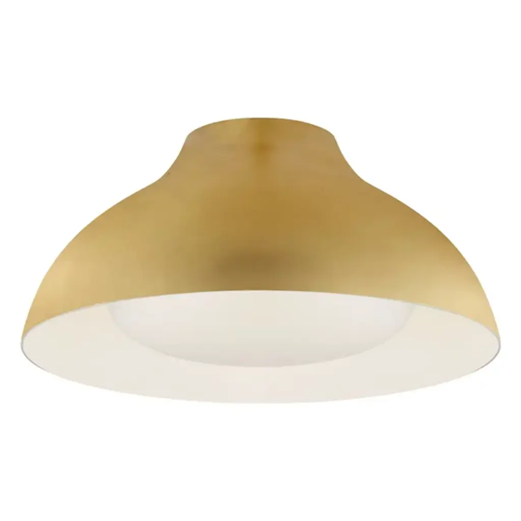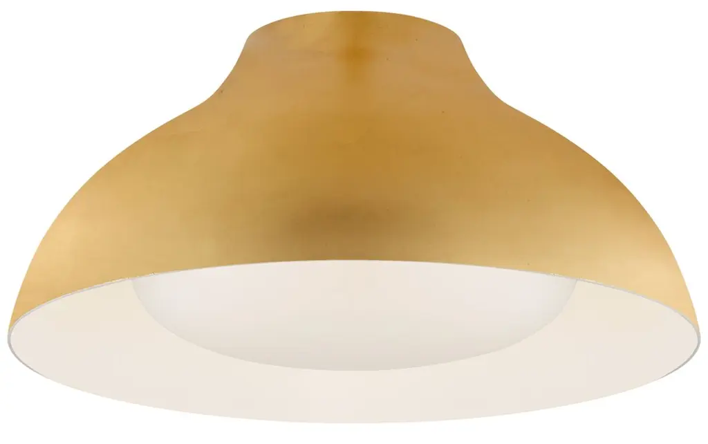 The white interior of this ceiling fixture's aluminum shade offers a crisp contrast to the gleaming gold finish of the exterior.