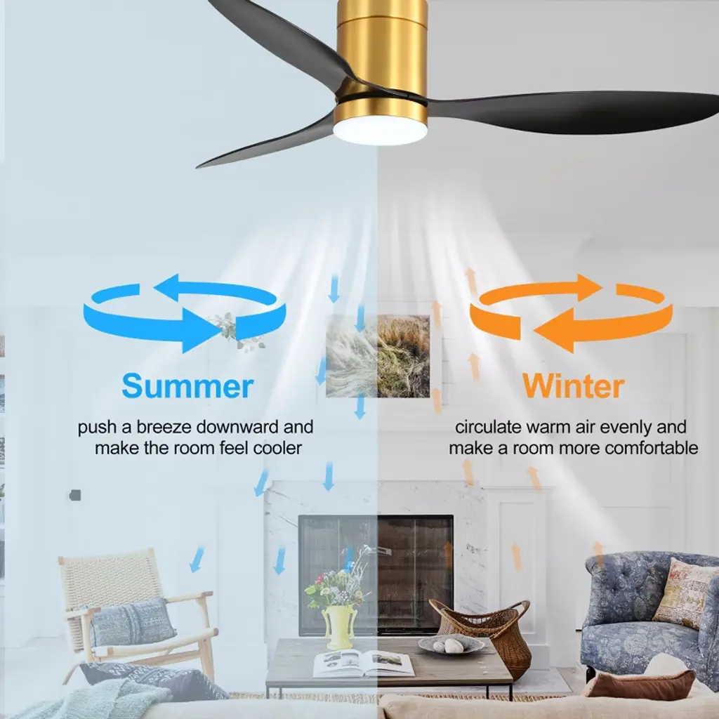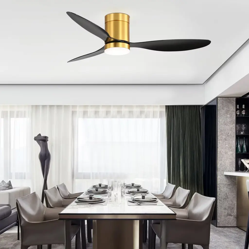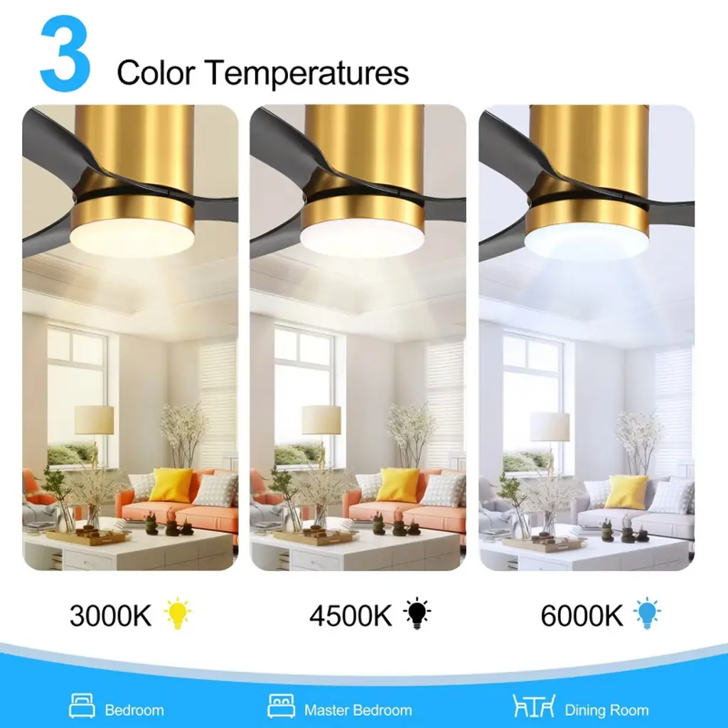 The 52" ceiling fan features an energy-saving 6-speed, reversible DC motor housed in a clean body with architectural blade arms supporting 3 blades, 3000K/4500K/6000K LED Light, and is easily controlled with the included remote control. Super quiet DC motor runs 70% more efficient than traditional AC fans.