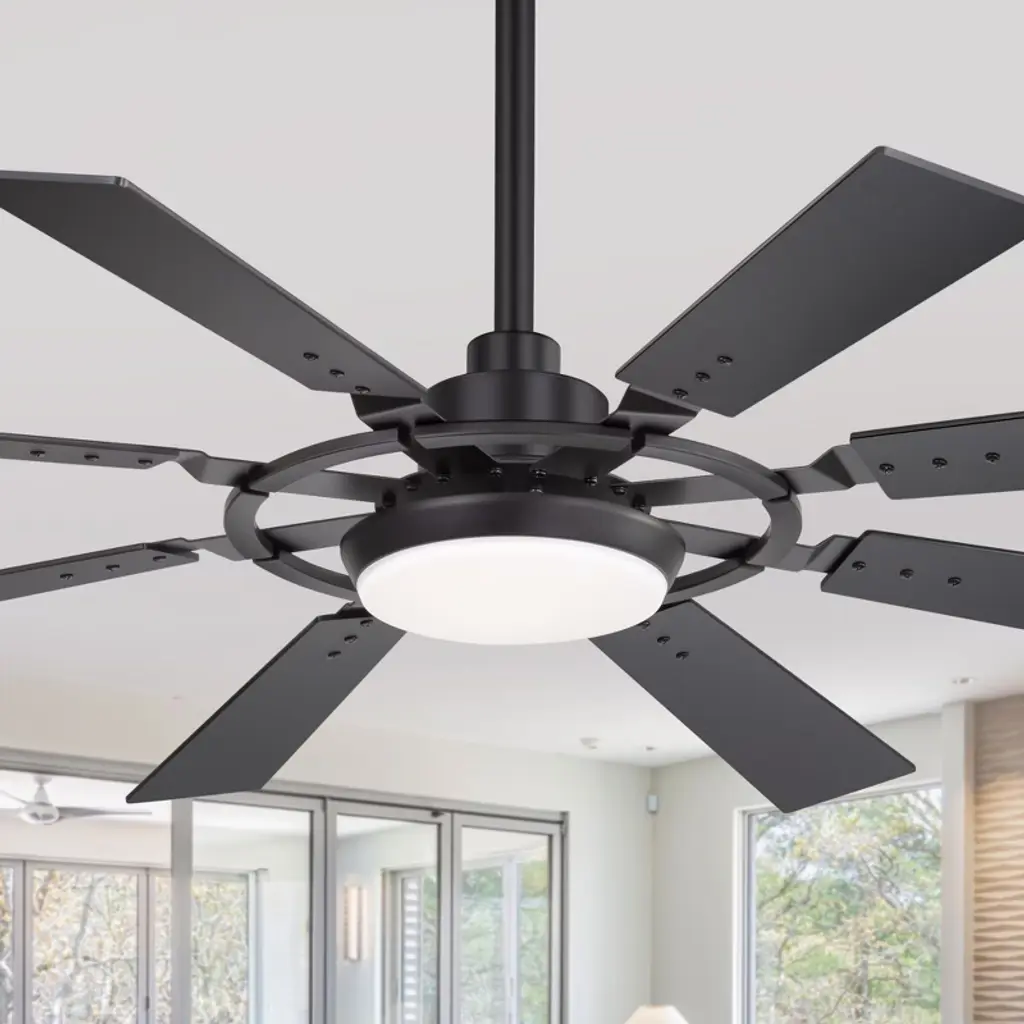 Airsurfer 52" Modern Ceiling Fan With 22w Dimmable Led Light, 8 Plywood Blades, Matte Black Finish & Reversible Quiet Motor