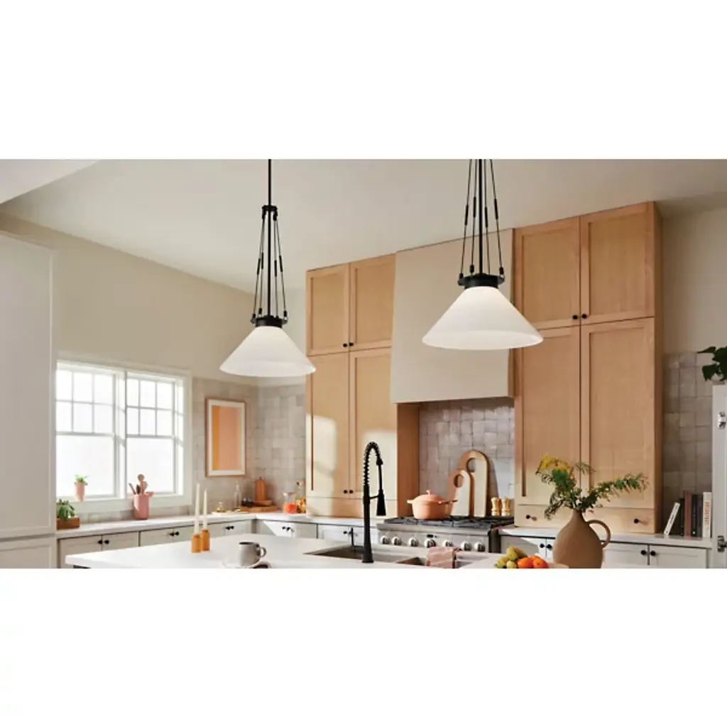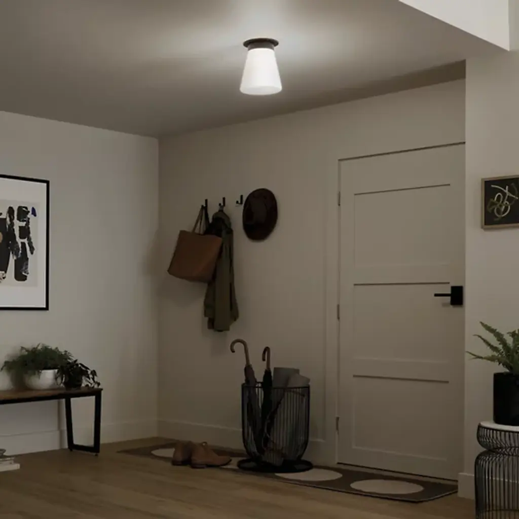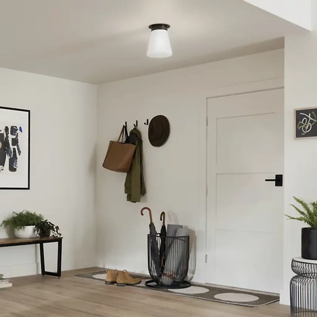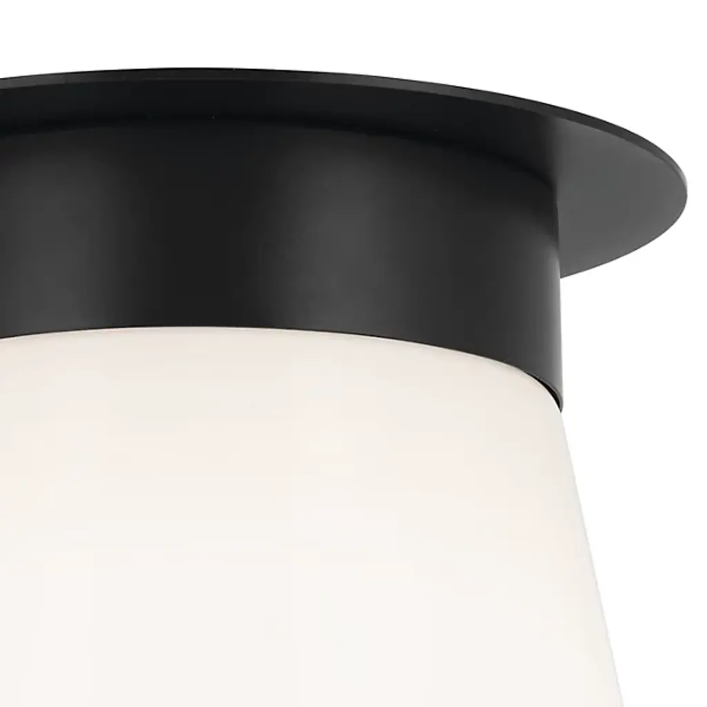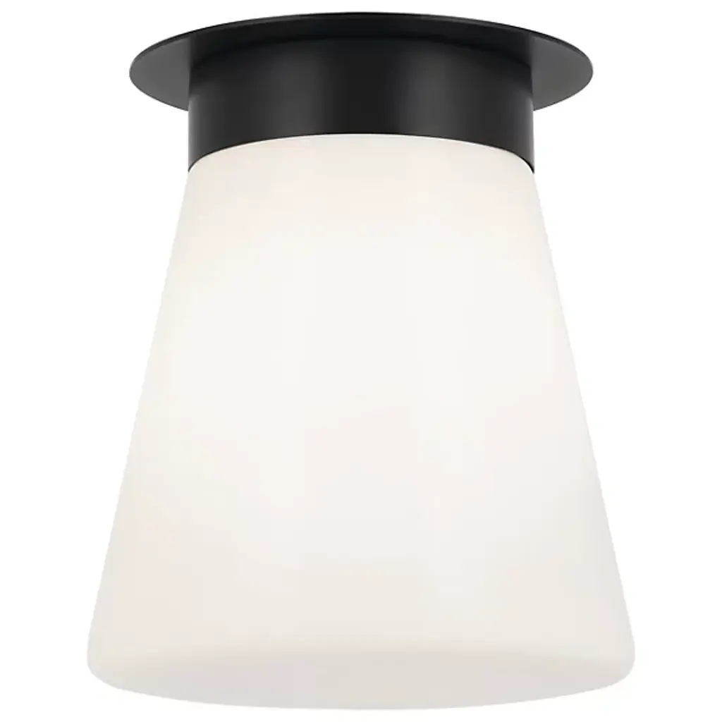 The Albers Flushmount by Kichler is a clean, contemporary fixture that adds an elevated aesthetic to the surrounding space. Its unique, tapered shade and subtle metal accent make this piece ideal for contemporary homes, and its dimmable LED technology allows you to create the perfect ambiance for any occasion. This simple form allows for easy installation and maintenance.