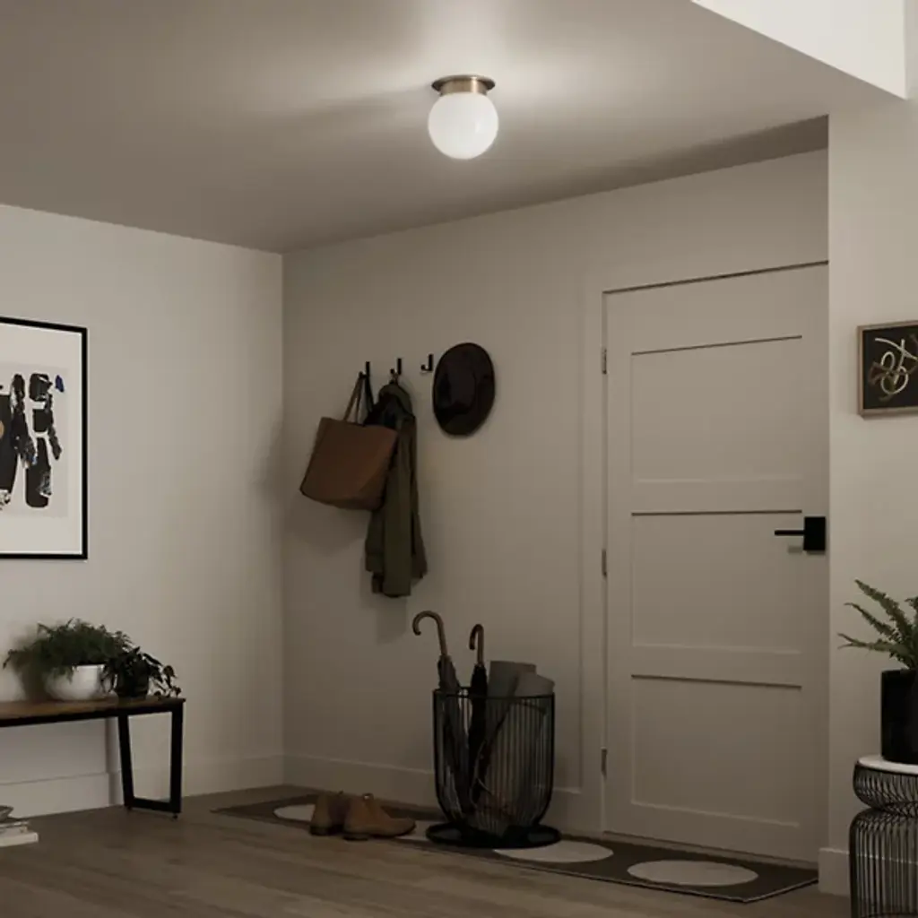 The Albers Globe Flushmount by Kichler is a simple yet stylish piece that adds a touch of luxury to any room. Its globe-shaped shade provides soft, diffused light that is perfect for creating a relaxing or energizing atmosphere. This is topped with a low-profile metal body which adds support as well as visual depth to the fixture.