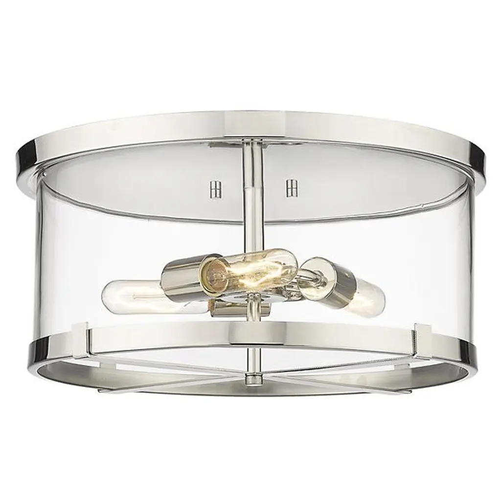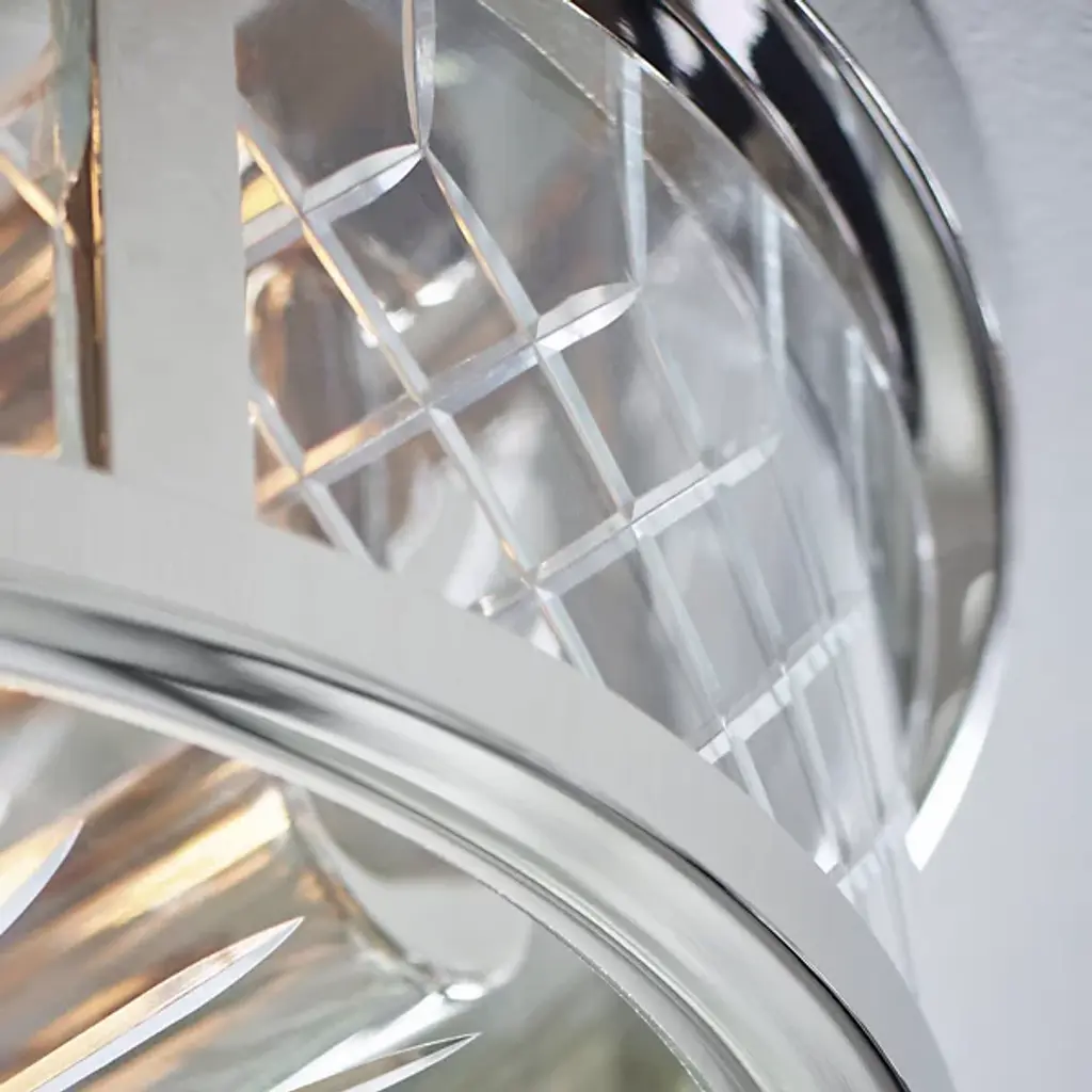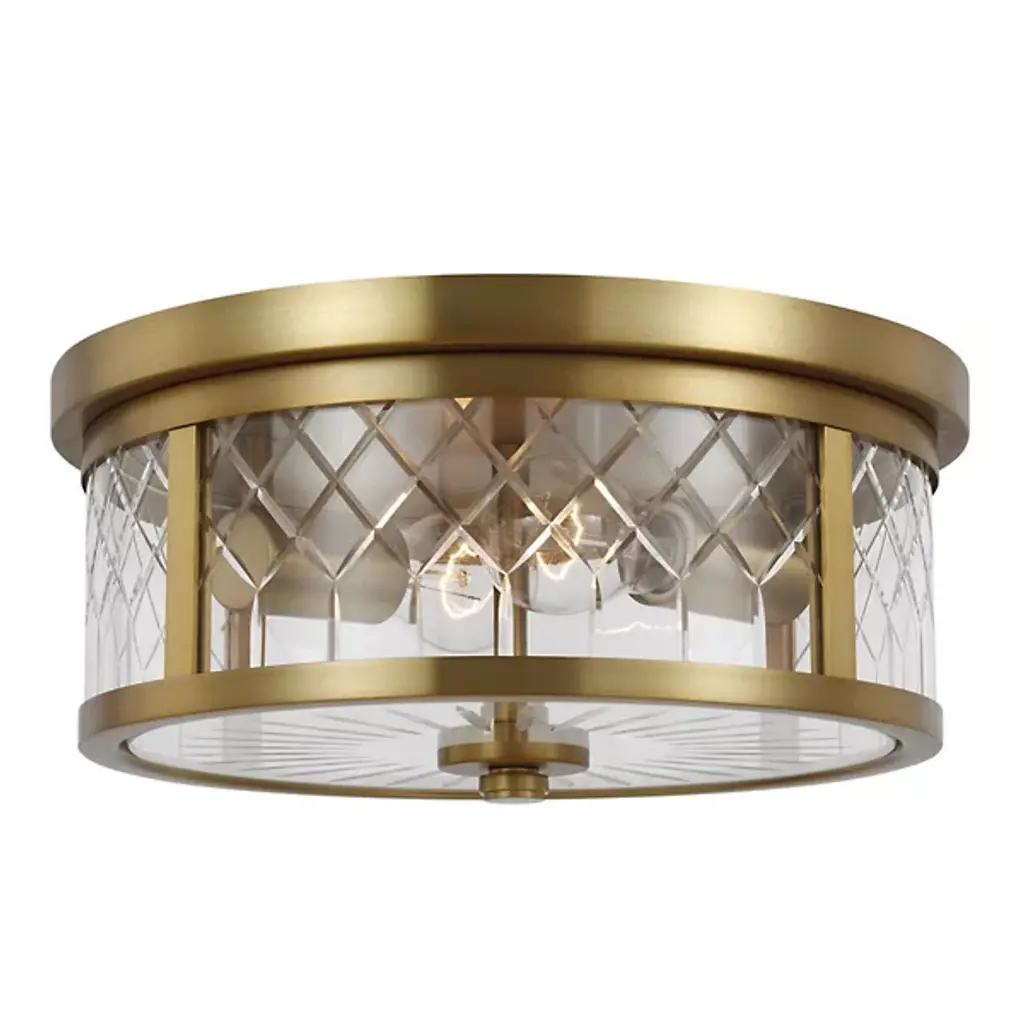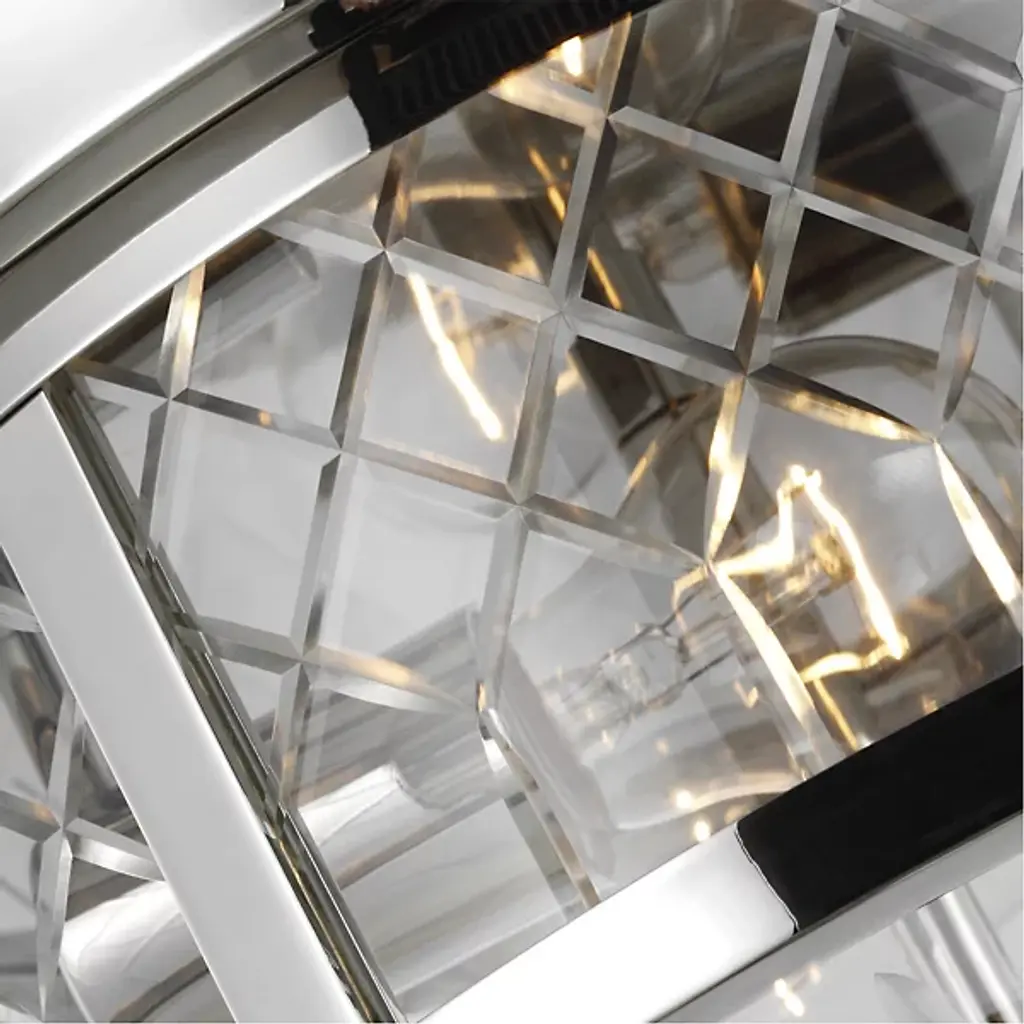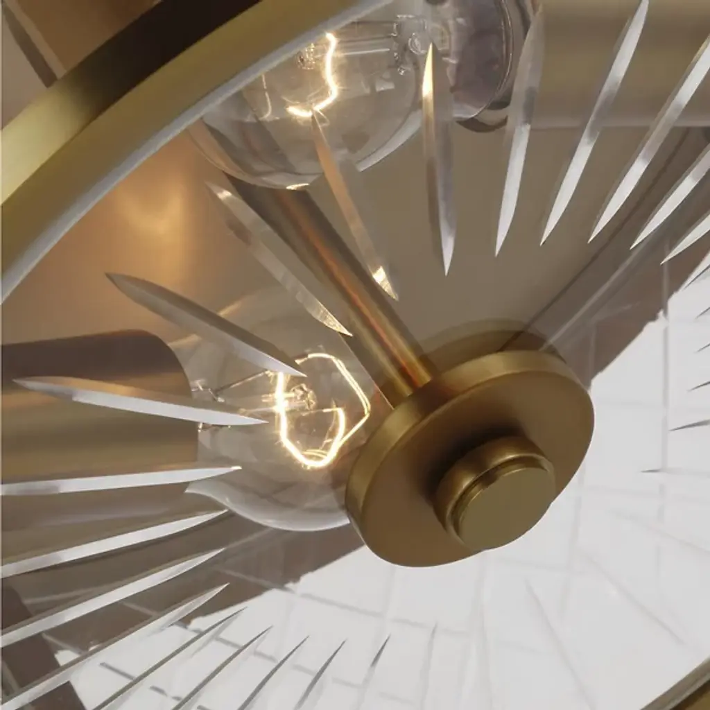 Bring a touch of glamour to your home with the Alec Flushmount from Visual Comfort Studio, formerly known as AH by Alexa Hampton, A rounded canopy and frame constructed from smooth steel supports a clear glass shade adorned with cut crystal detailing, alluding to Art Deco style. Two incandescent bulbs nestled behind the glass shade emit a warm and welcoming light, elegantly glistening across the textural glass and bathing a room with a delightful glow. Suitable for damp spaces, this flushmount brings life to any room in the house.