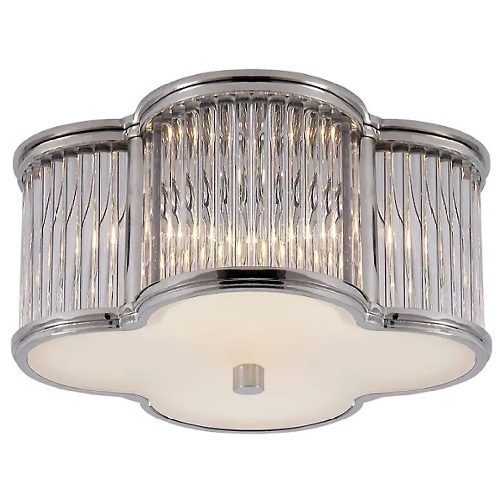 Basil 17" Flush Mount in Polished Nickel and Clear Glass Rods with Frosted Glass