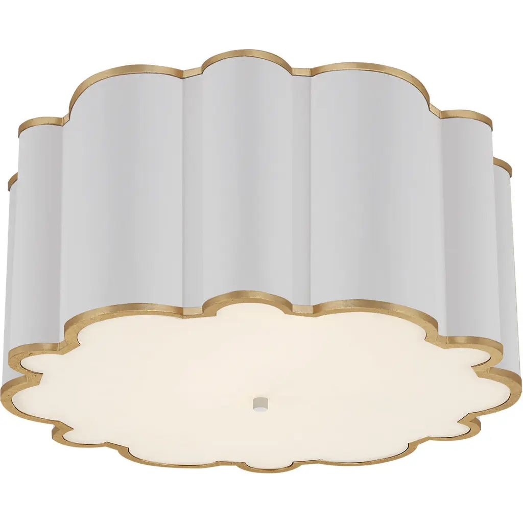 Alexa Hampton Markos 4 Light 26.25 Inch White With Gild Flush Mount Ceiling Light In Frosted Acrylic, Grande