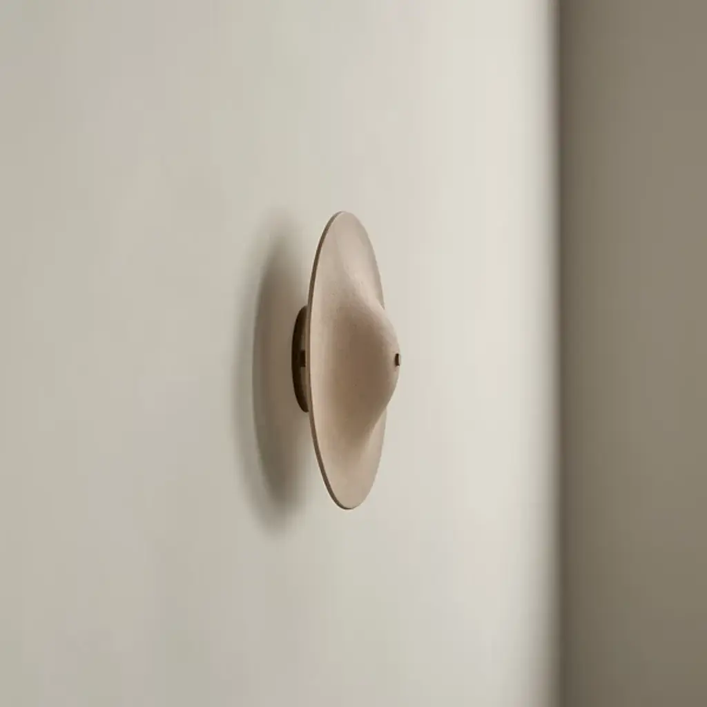 The Alien Slim Wall / Flushmount from In Common With presents a striking fusion of rustic elegance and refined design, accentuated by its intriguing surface texture. The design places powerful lamping beneath a hand-draped, circular ceramic shade, emitting an ethereal and flattering glow that plays well when mounted on ceilings or walls in any space. ADA-compliant and damp-listed, its versatile deployment adds light and luxury to various environments, playfully resembling a space saucer in flight. The design combines simple Contemporary design with Artisanal Modern refinement, enhancing indoor settings with aesthetic allure and balanced ambiance.