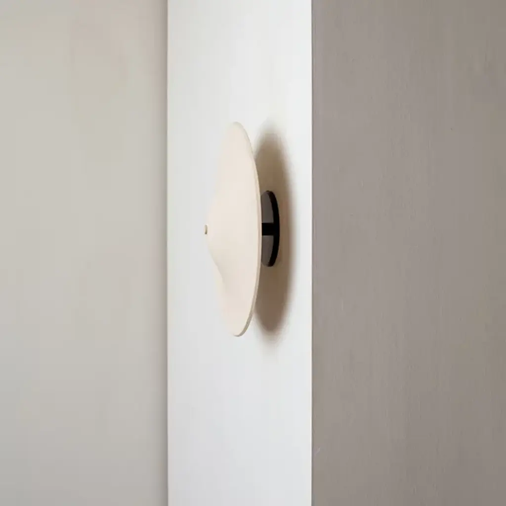 The Alien Slim Wall / Flushmount from In Common With presents a striking fusion of rustic elegance and refined design, accentuated by its intriguing surface texture. The design places powerful lamping beneath a hand-draped, circular ceramic shade, emitting an ethereal and flattering glow that plays well when mounted on ceilings or walls in any space. ADA-compliant and damp-listed, its versatile deployment adds light and luxury to various environments, playfully resembling a space saucer in flight. The design combines simple Contemporary design with Artisanal Modern refinement, enhancing indoor settings with aesthetic allure and balanced ambiance.