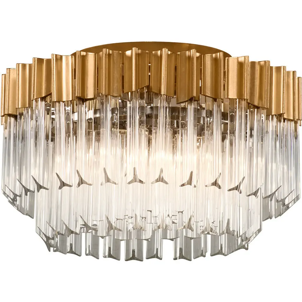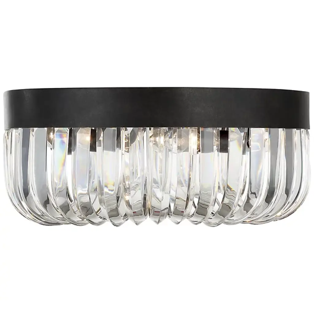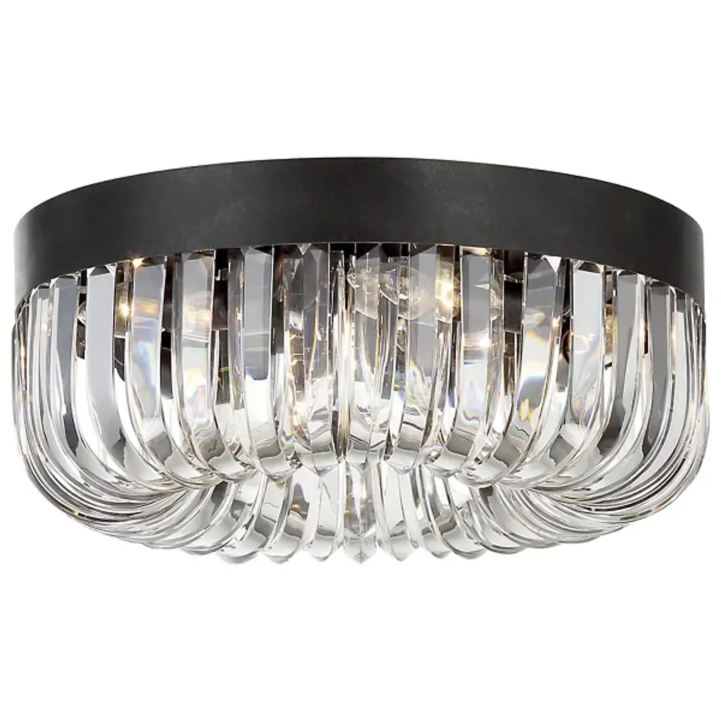 The Alister Flushmount by Crystorama is a bold, glamourous addition to spaces. Light sources are placed between a series of faceted, U-shaped, cut crystals that are evenly spaced within a robust metal frame. This arrangement provides a brilliant level of light output, bringing this close to the ceiling fixture to life and brightening surroundings. The soft, rounded shape of this flushmount is simple, allowing its beautiful construction to lend a stunning touch to spaces.