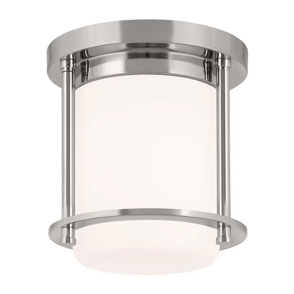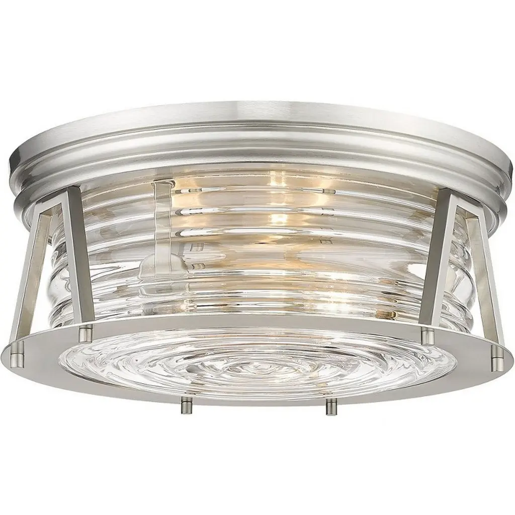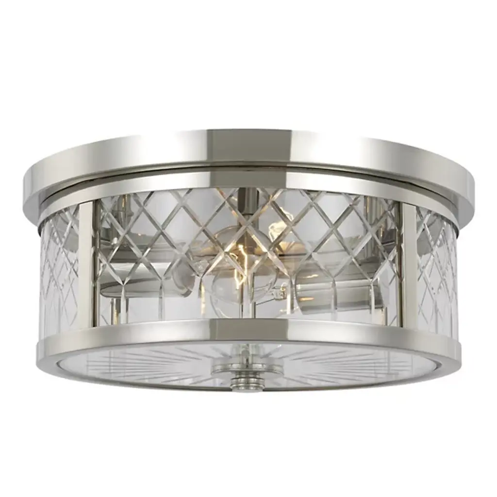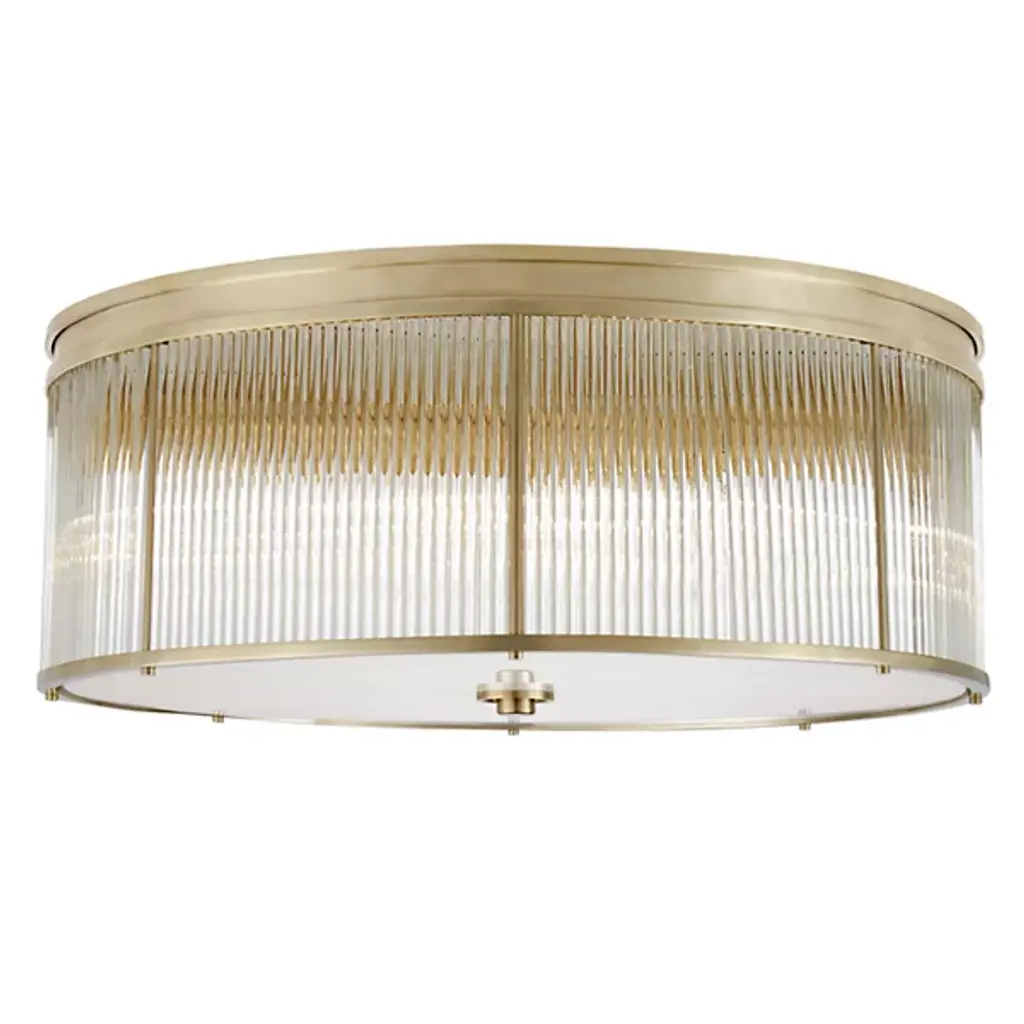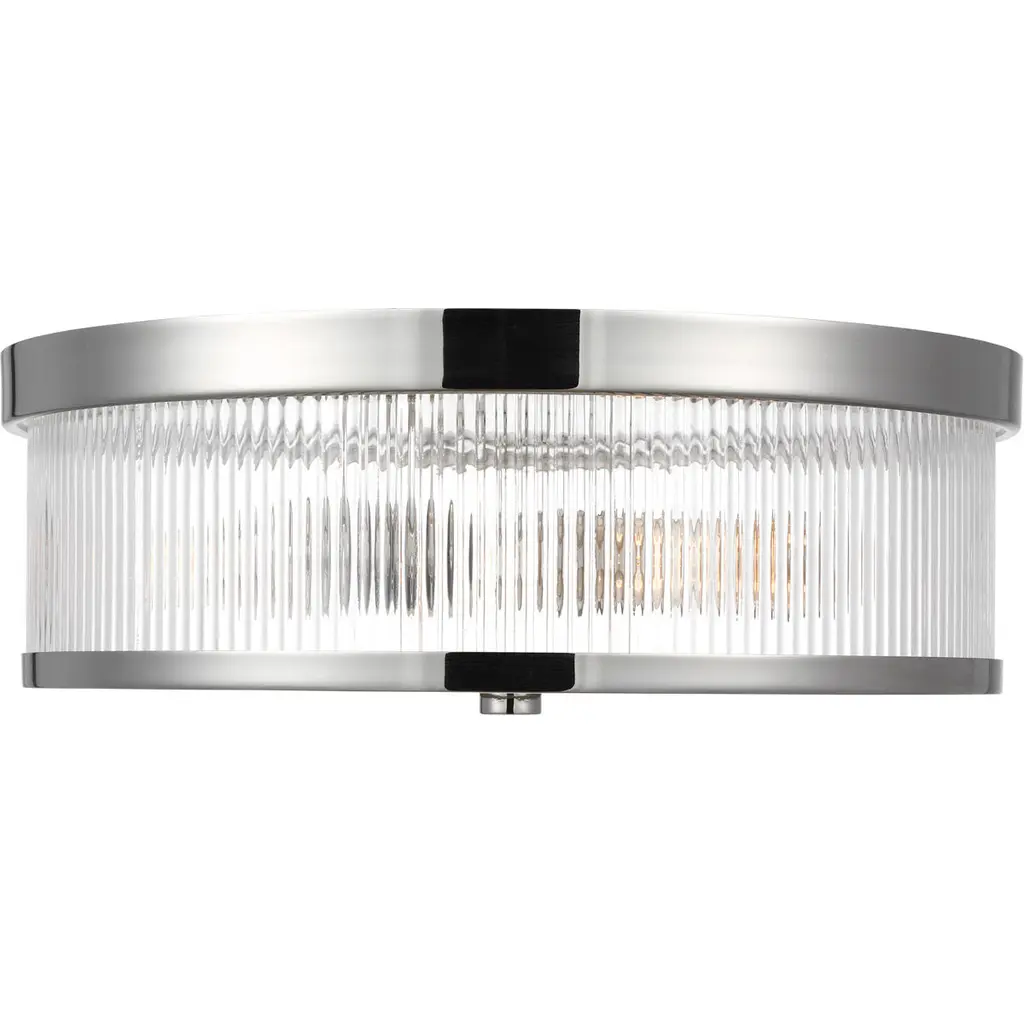 Fill your rooms with the understated elegance of designer Ralph Lauren’s fashions with the Ralph Lauren designed Allen Grande Flushmount from Visual Comfort Signature, formerly known as Visual Comfort, Like the rest of Ralph Lauren’s work, this piece exudes an effortless personality. One by one, optically perfect clear glass rods move in a circular fashion to create the marvelous shade of the piece. A handsome metal framework adds definition to the glass with a sharp edge. A white glass diffuser caps the base, offering a glare-free experience when turned on. Its light sparkles with grace through the series of rods while filtering through the white glass in a soft glow.