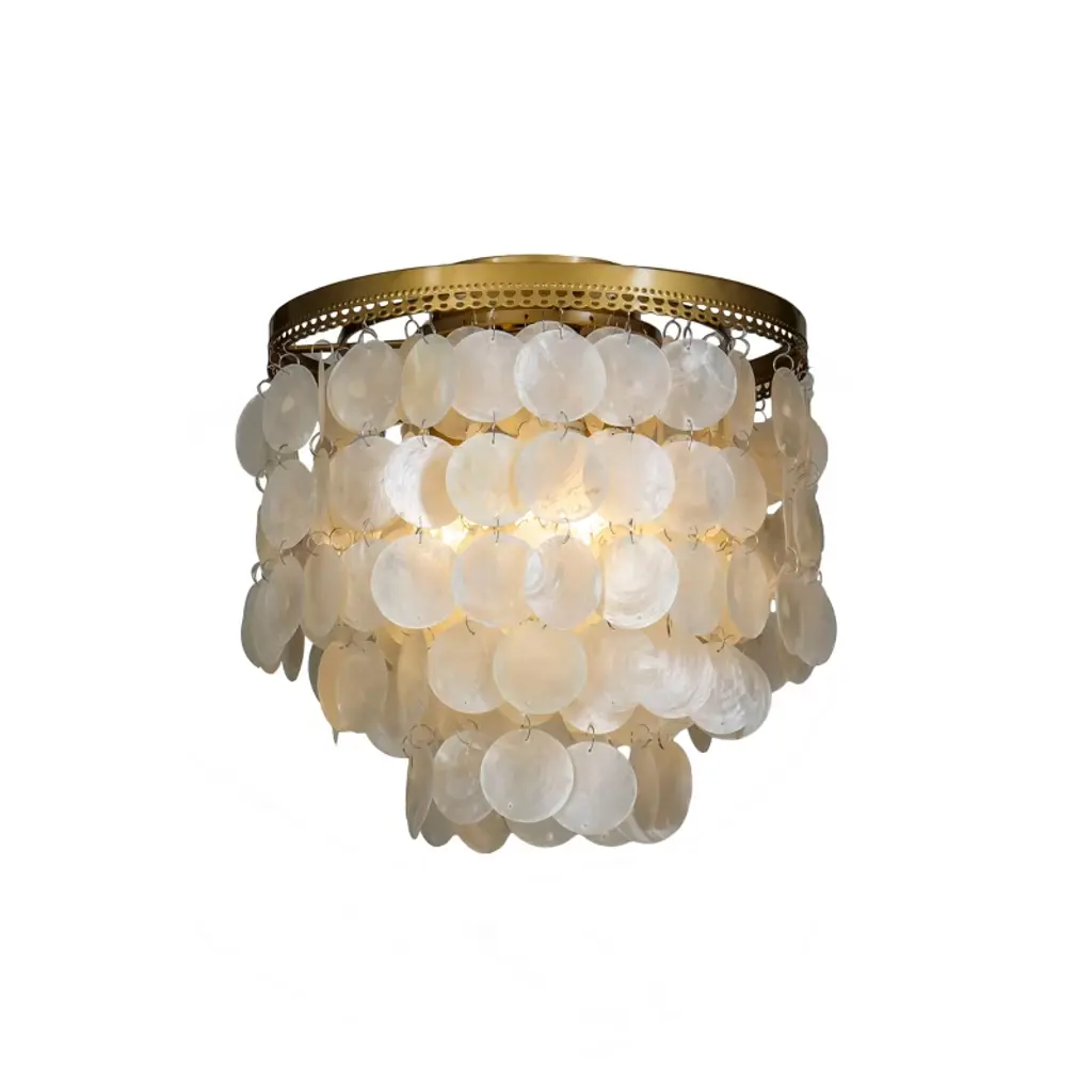 Illuminate your space with coastal elegance using our exclusive 3-Light 13" Indoor Capiz Shell antique brass Flush Mount Ceiling Lights. Crafted with over 100 natural capiz shells delicately suspended in a stunning gold frame, this exquisite chandelier serves as the perfect lighting solution for your dining room or bedroom. Its timeless design complements any decor, while adding a refreshing coastal touch to your space. Experience the allure of this chandelier as it casts a soft and inviting glow, creating a fresh and invigorating atmosphere in your home.