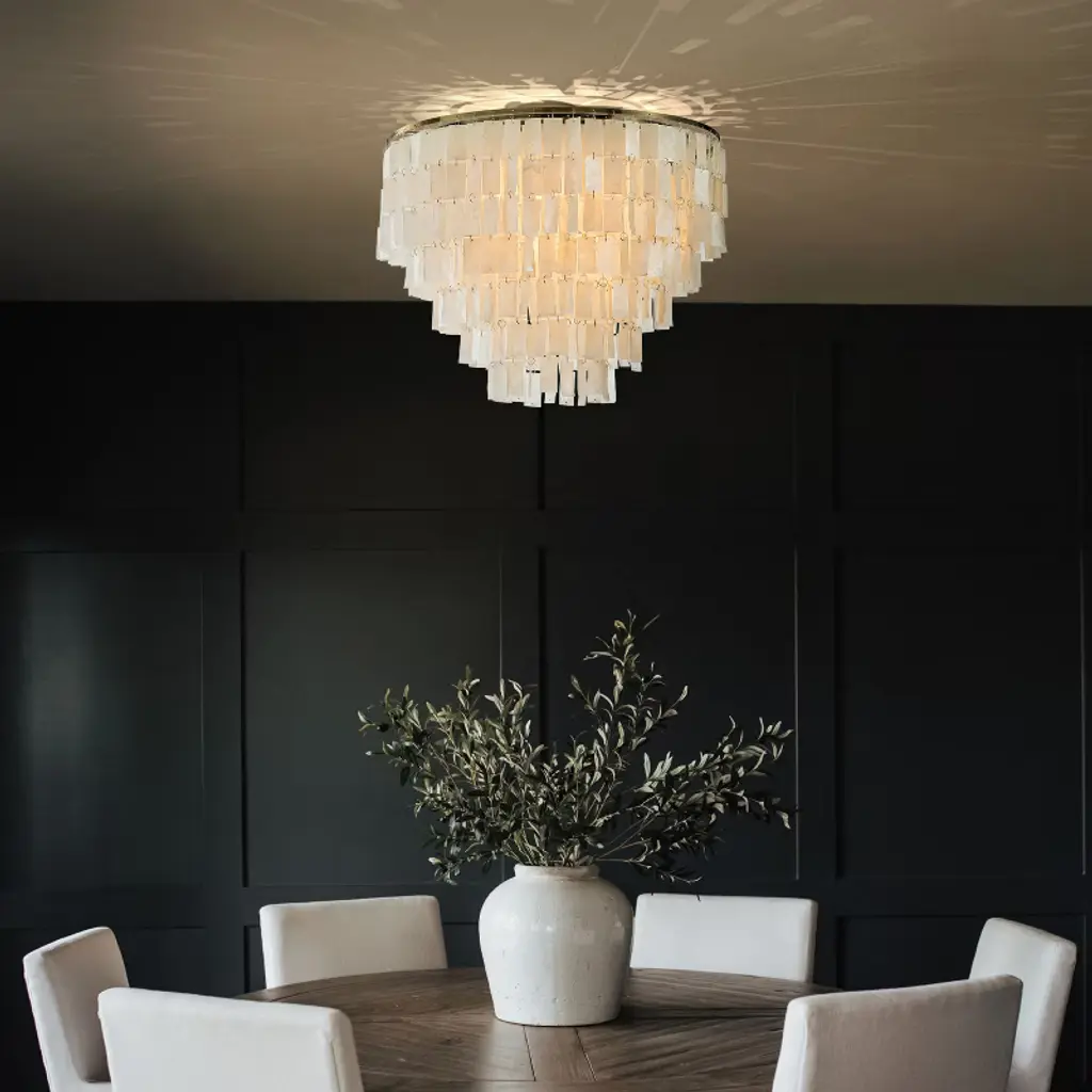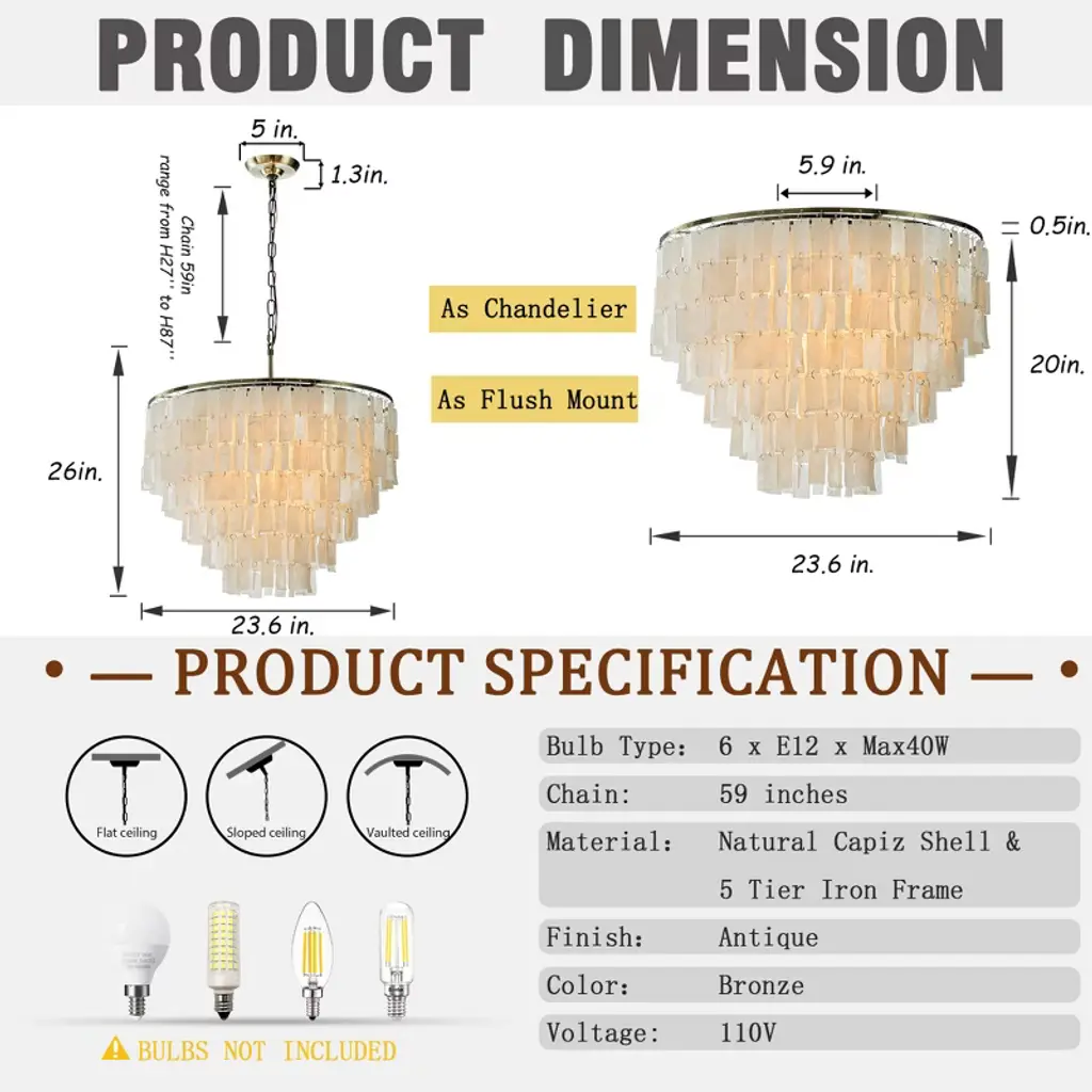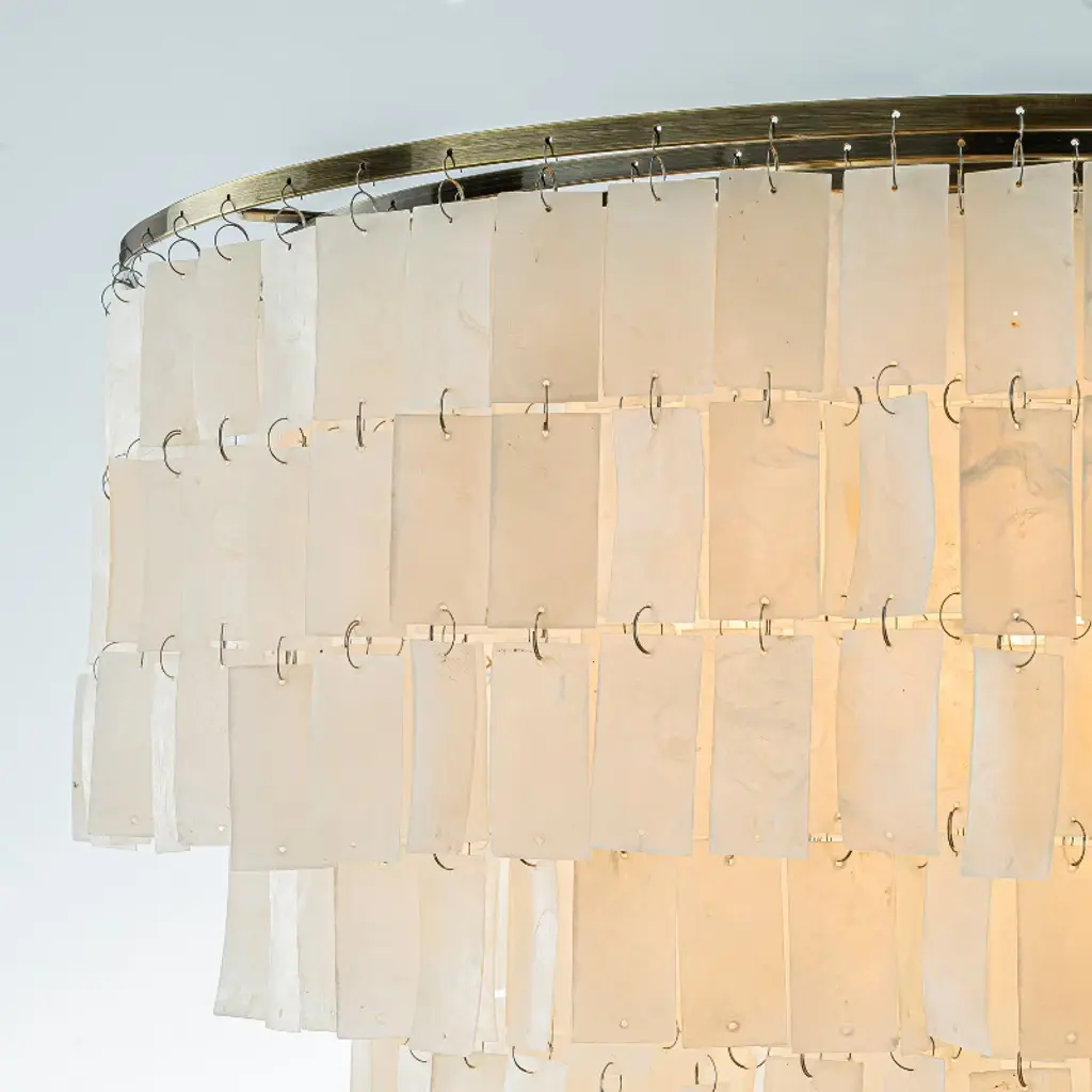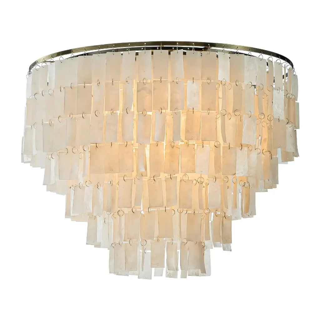 Indulge in the timeless elegance of our Antique Bronze Capiz flush mount lighting, a stunning blend of nature and sophistication. This 6-light lighting fixture features exquisite natural capiz shells delicately suspended from an antique bronze frame, creating a captivating visual harmony. Each shell accent allows light to permeate, casting a soft, ambient glow that transforms any room into a warm and inviting sanctuary. The antique bronze finish adds a classic touch, ensuring this ceiling lamp stands out as a piece of art even when not illuminated. Ideal for enhancing the aesthetic appeal of foyers, living rooms, dining rooms, bedrooms, entryways, bathrooms, and restaurants, this tiered ceiling lighting complements a variety of decor styles including Modern Farmhouse, Coastal, Vintage, Transitional, and Glam. Transform your space with the laid-back luxury of coastal living and the chic allure of glamorous style. Our Antique Bronze Capiz Flush Mount Ceiling Light is not just a lighting fixture; it is a statement of sophisticated charm and timeless beauty. Order now and elevate your home decor.