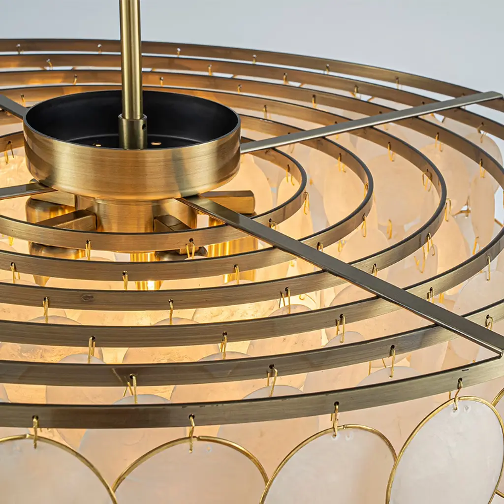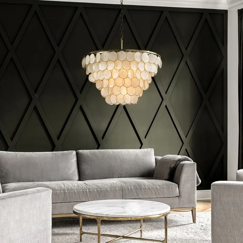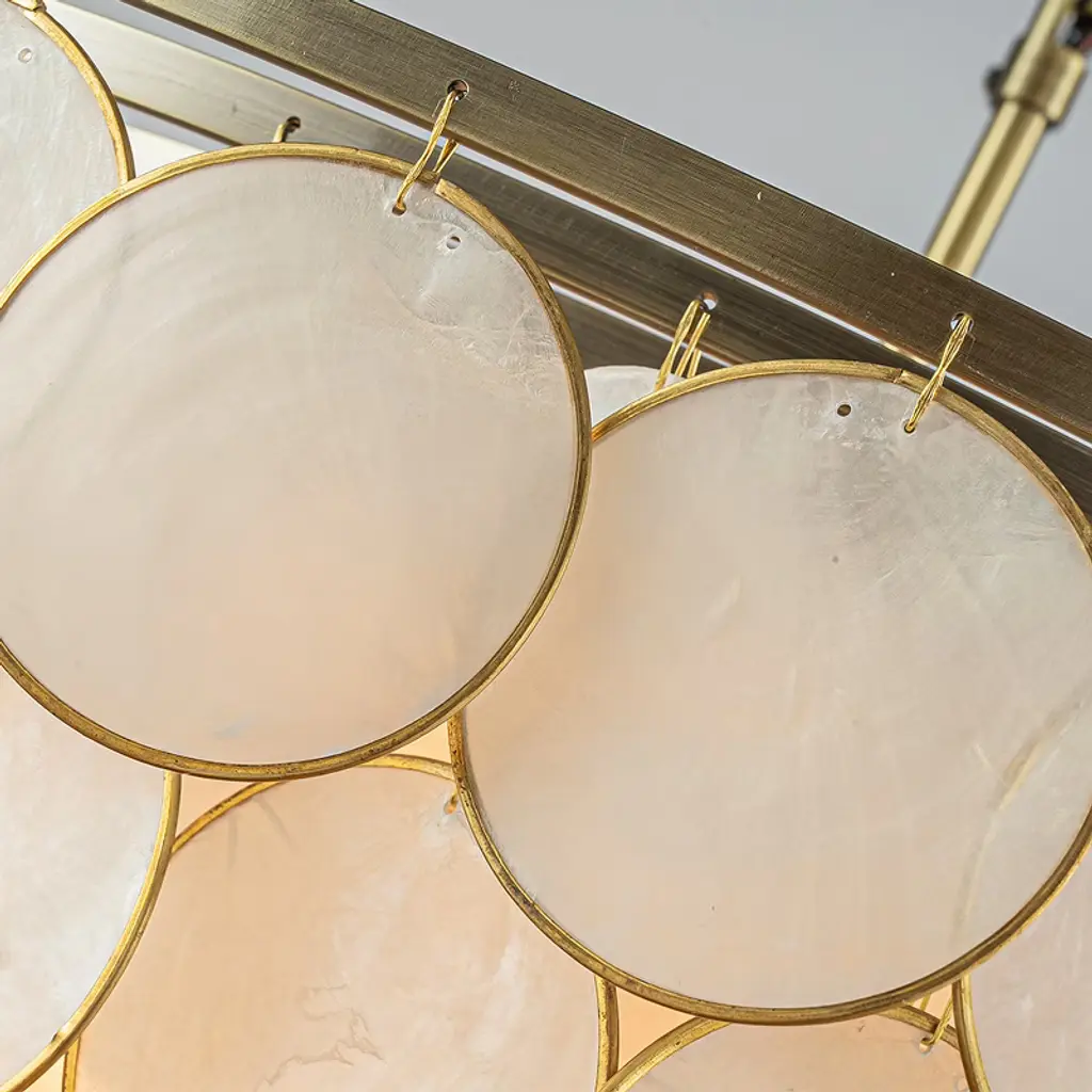 Elevate your space with the timeless elegance of this 5-light Capiz seashell chandelier, featuring a shade crafted from hundreds of natural Capiz seashells. Each seashell is hand-wrapped with brass edges, creating a stunning design that casts a dramatic play of light and a softly diffused glow. The aged bronze finish complements the natural texture of the Capiz seashells, making this chandelier a show-stopping centerpiece. The chandelier!-s versatile design makes it a perfect addition to a wide variety of spaces, including foyers, entryways, living rooms, dining areas, kitchens, and bathrooms. Its adjustable chain (ranging from 24" to 81") and dual-use functionality!awhether used as a chandelier or a flush mount ceiling light!aallow it to fit seamlessly into small, medium, or large spaces with both high and low ceilings. This versatile lighting solution is perfect for both residential and commercial spaces, including living rooms, dining rooms, bedrooms, kitchens, or protected outdoor areas. Its coastal-inspired design blends seamlessly with modern farmhouse, vintage, and contemporary glam styles, offering a functional yet decorative lighting option.