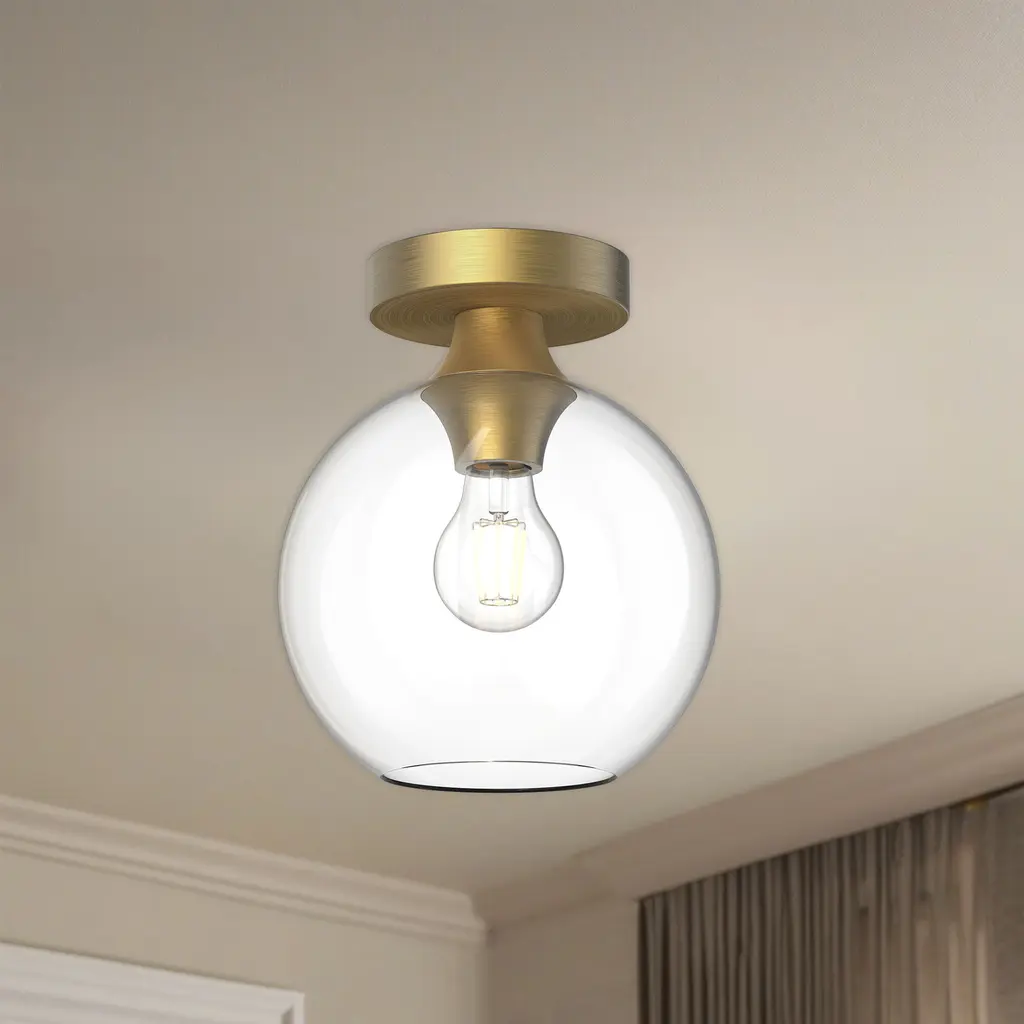 Alora Mood Castilla 1 Light 7.88 Inch Aged Gold Flush Mount Ceiling Light In Clear Glass