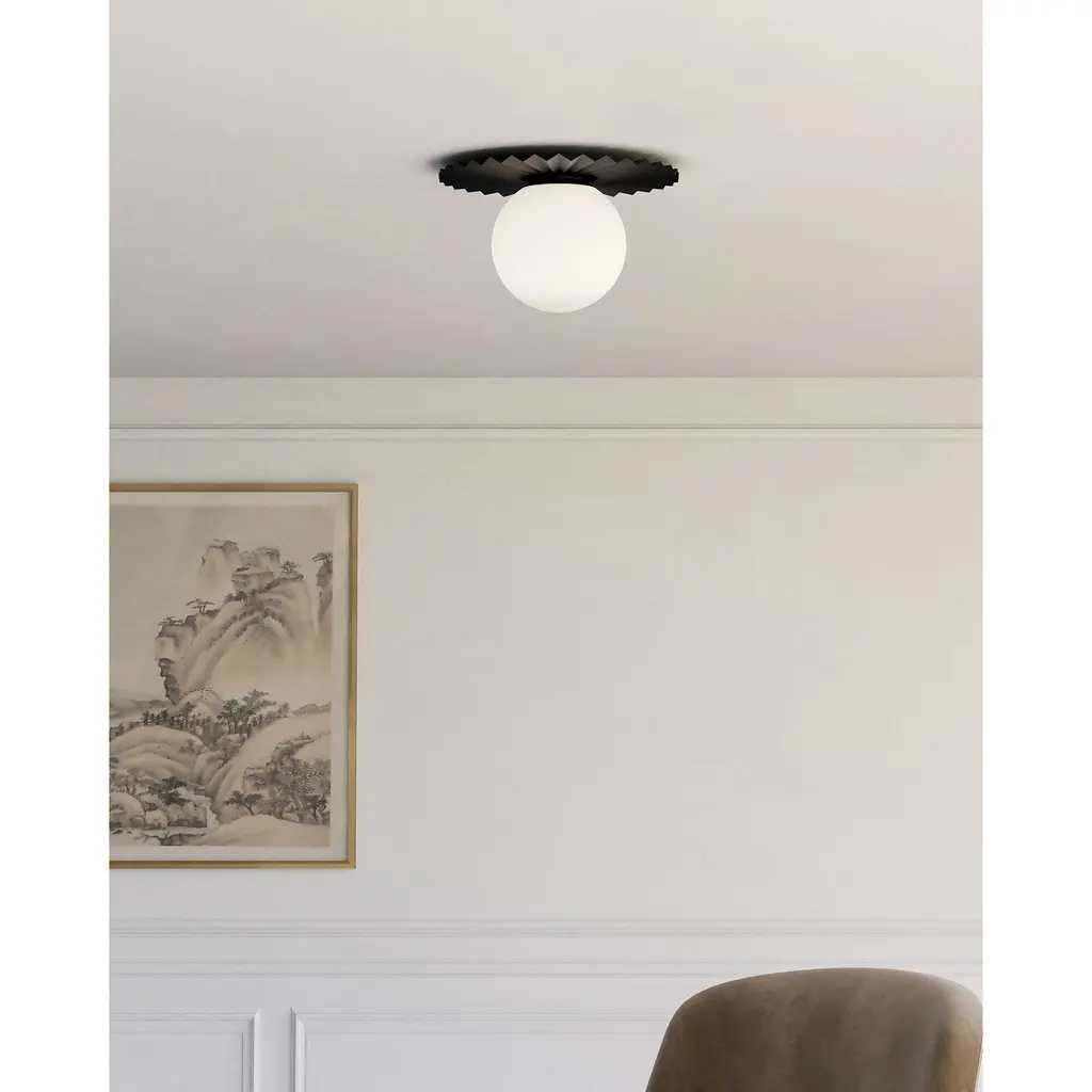 Taking notes from Paris Fashion Week, the Plume Collection exudes couture quality. With a pleated decorative disk and ample-sized Opal Matte glass globe, this collection is upbeat and stylish.