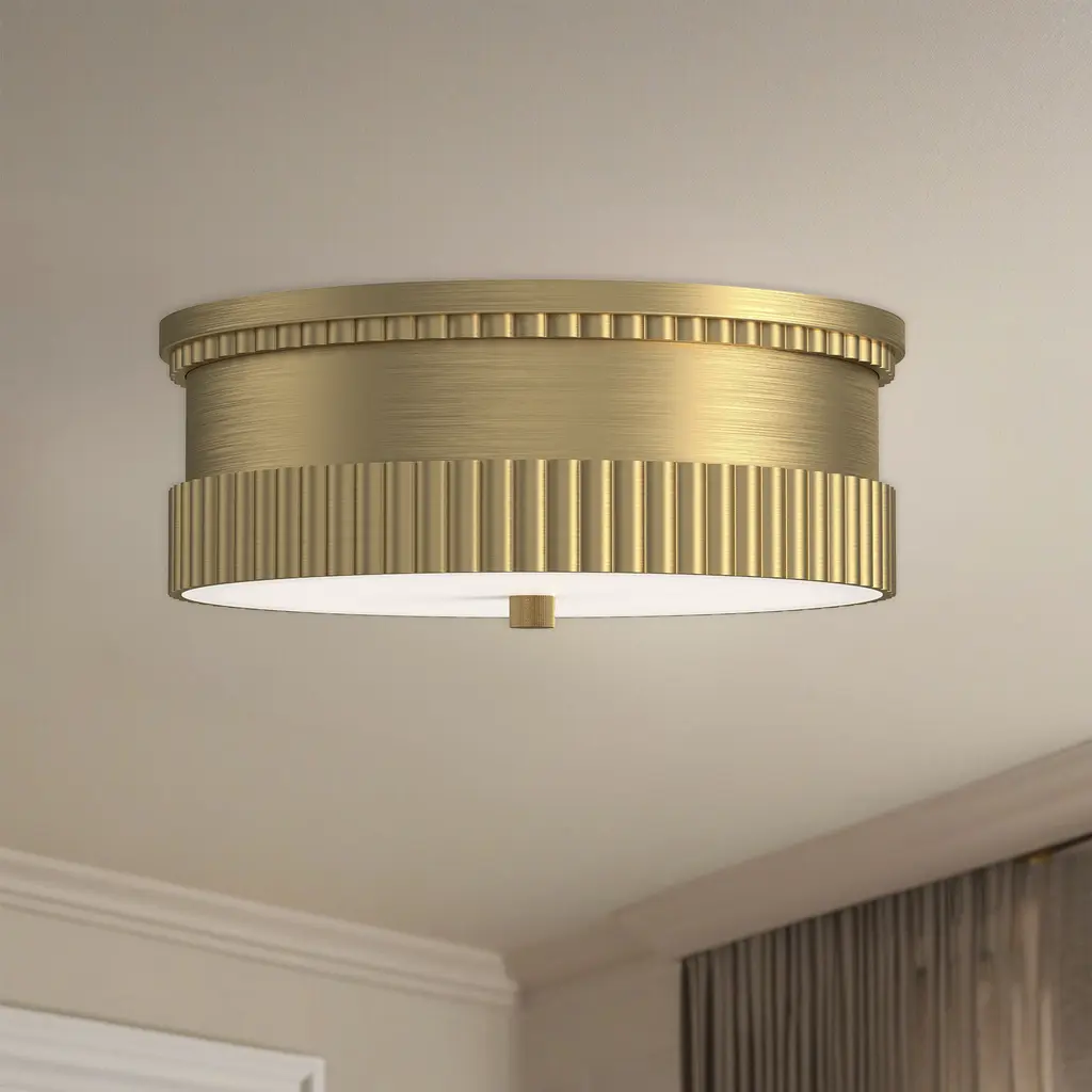 Alora Mood Rue 3 Light 14.25 Inch Brushed Gold Flush Mount Ceiling Light