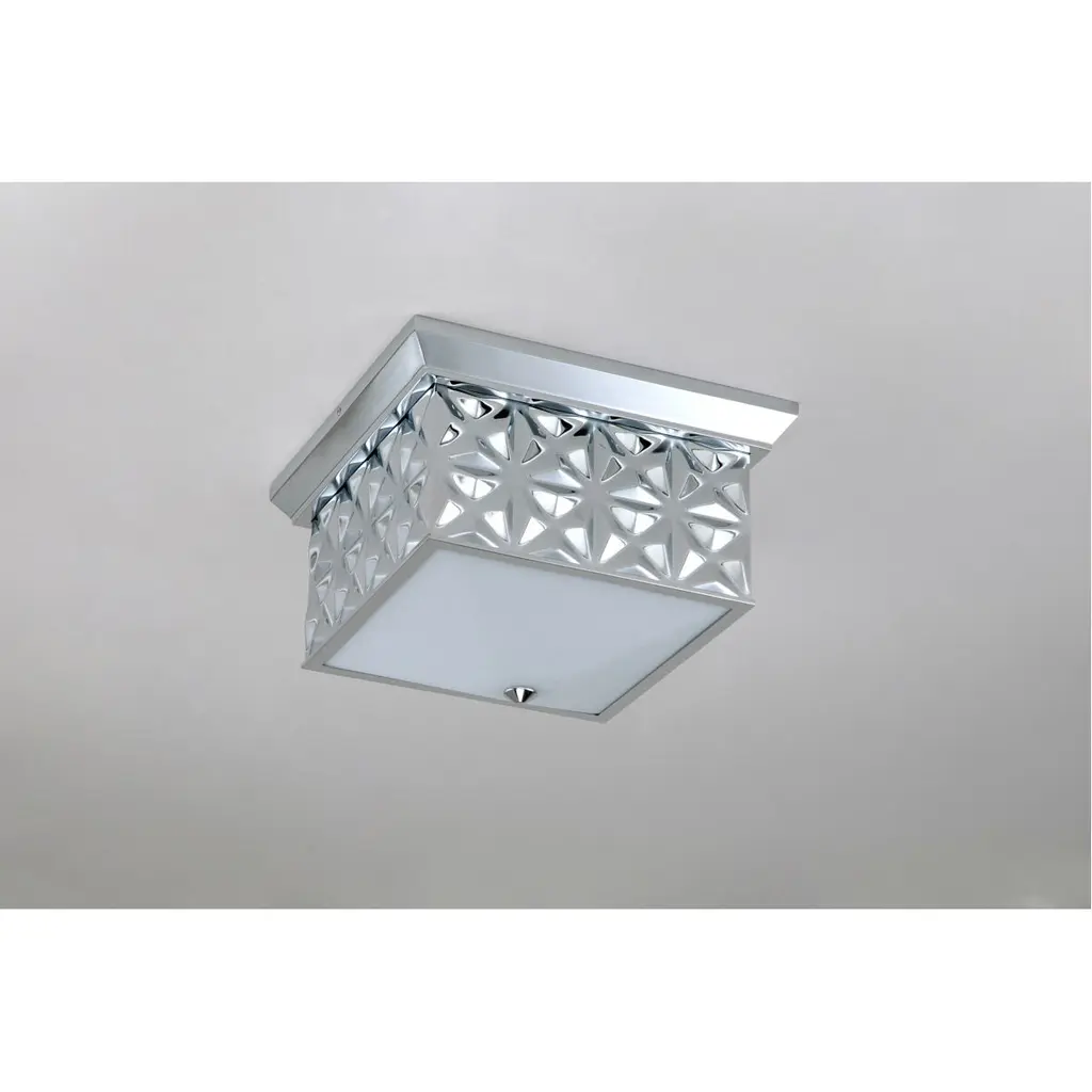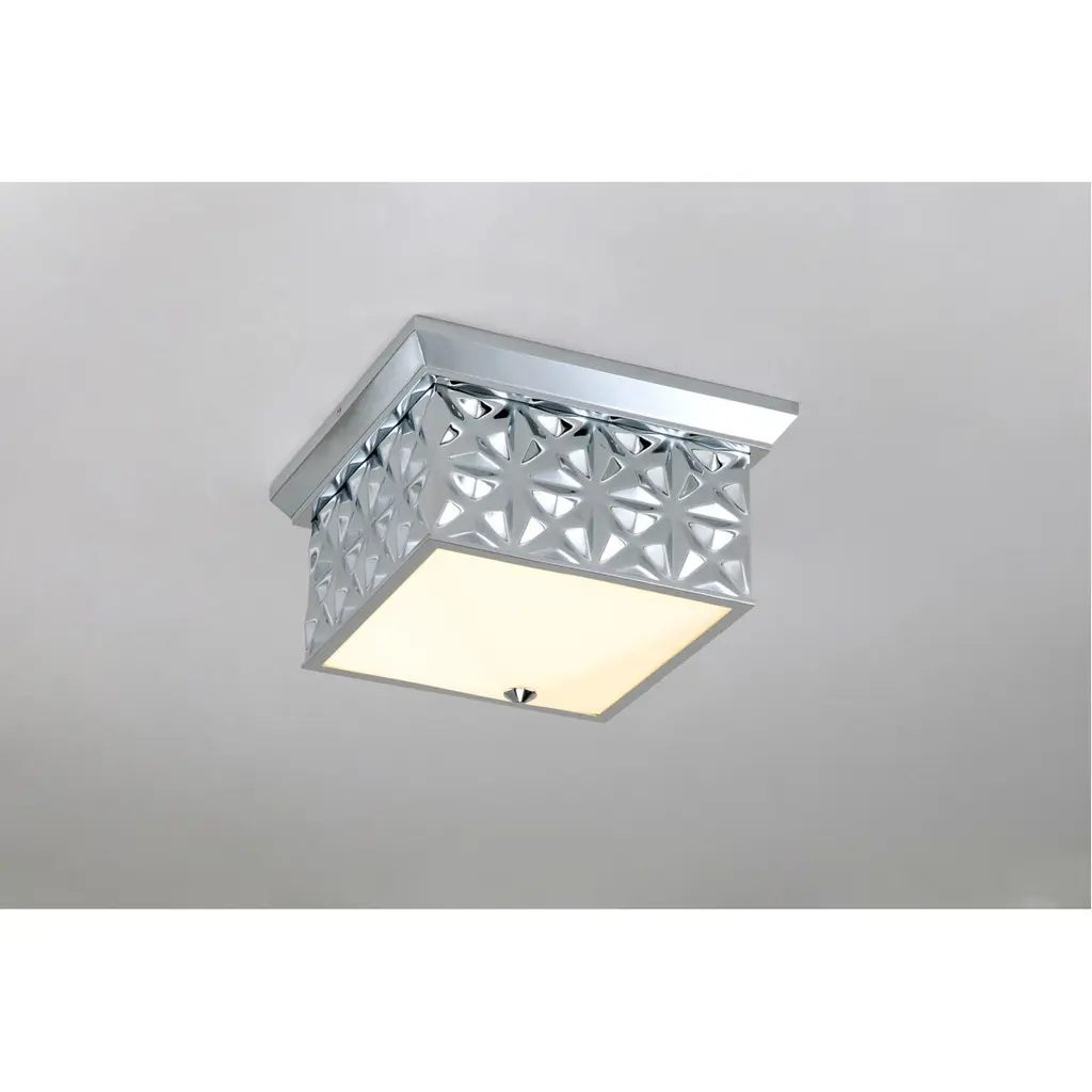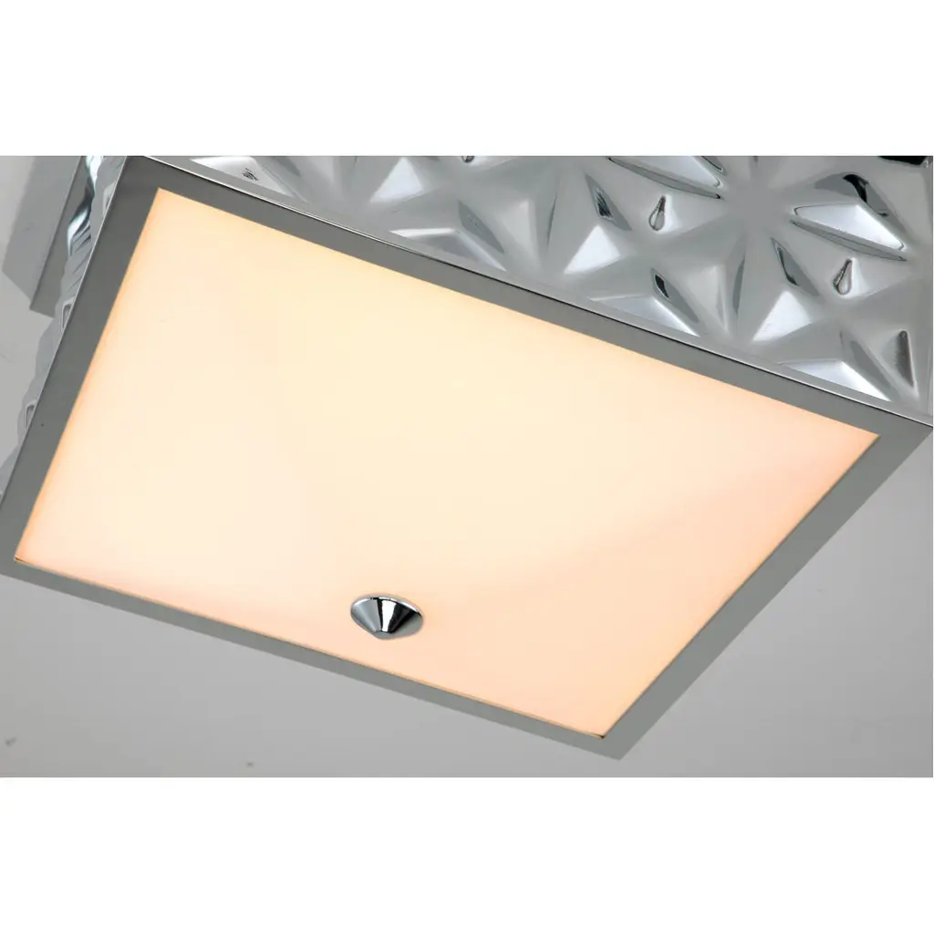 Always looking to add texture and dimension to a room, we created the perfect 14.5 inch square flush mount ceiling light. The sophisticated design of this lighting fixture uses shape and its polished chrome finish to add traditional design and eye-catching appeal. Approved for damp location, this flush mount will work in a bathroom design as well as a kitchen or living room space. The creamy white glass allows just the right amount of light to create a beautiful, flattering ambiance giving off just the right amount of light.