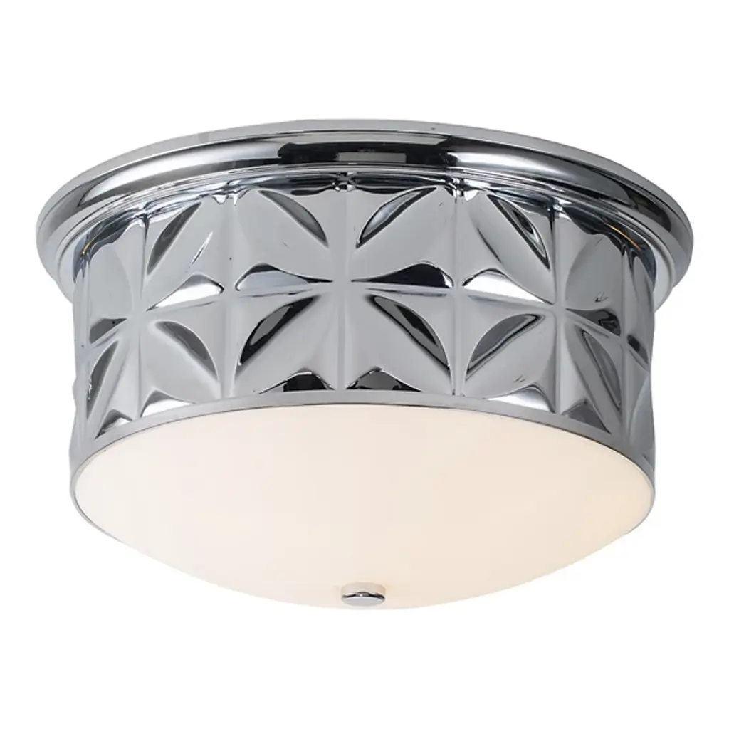Always looking to add texture and dimension to a room, we created the perfect 14.5 inch square flush mount ceiling light. The sophisticated design of this lighting fixture uses shape and its polished chrome finish to add traditional design and eye-catching appeal. Approved for damp location, this flush mount will work in a bathroom design as well as a kitchen or living room space. The creamy white glass allows just the right amount of light to create a beautiful, flattering ambiance giving off just the right amount of light.