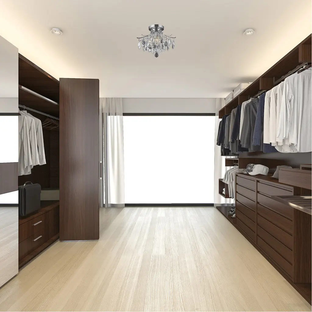 The Amelia collection sparkles with an extraordinary display of octagon crystals and faceted crystal pendalogues, creating the illusion of a shimmering cascade of ornamentation pouring from a sleek metal canopy. These fixtures would be a commanding visual presence in any room, and will fit comfortably in smaller spaces.