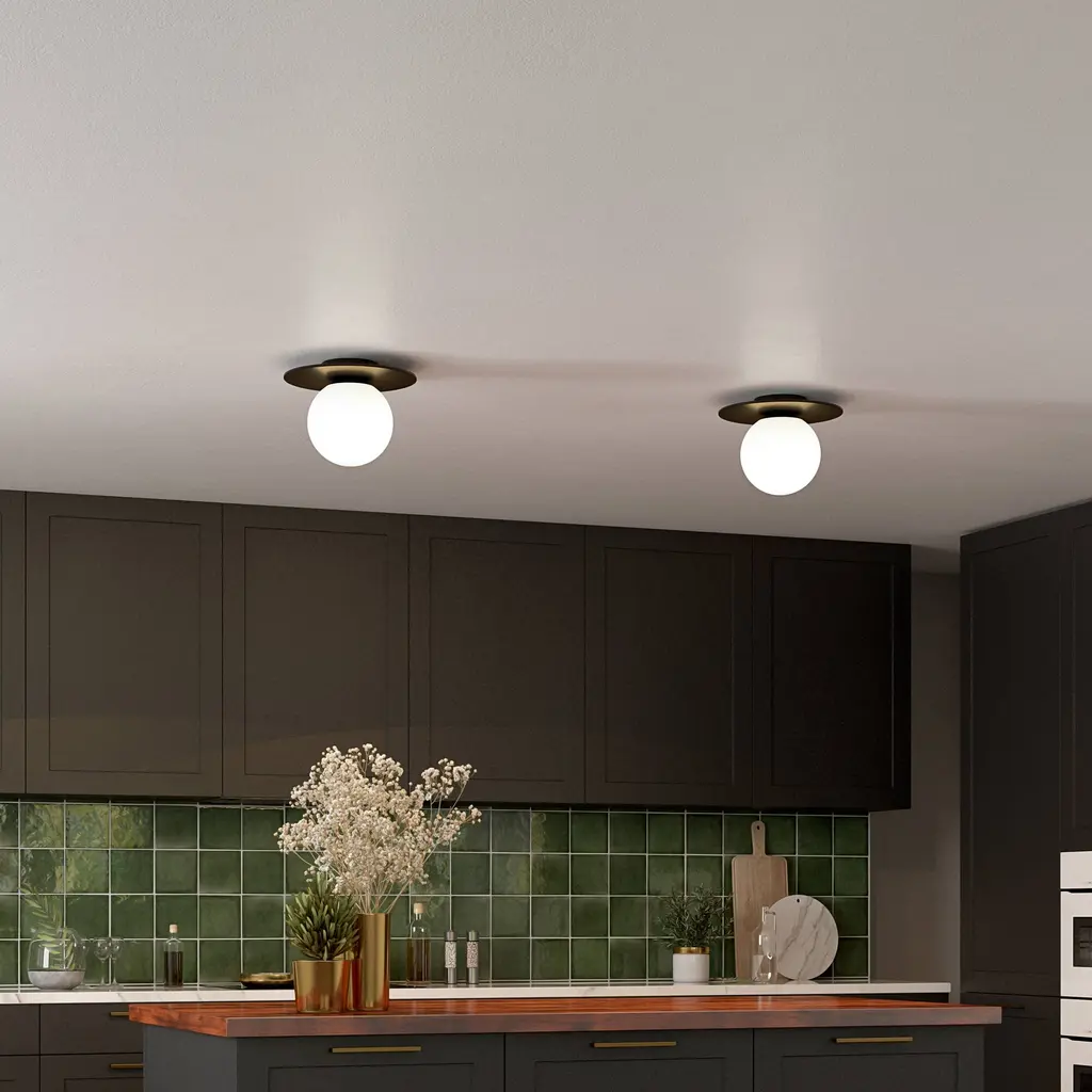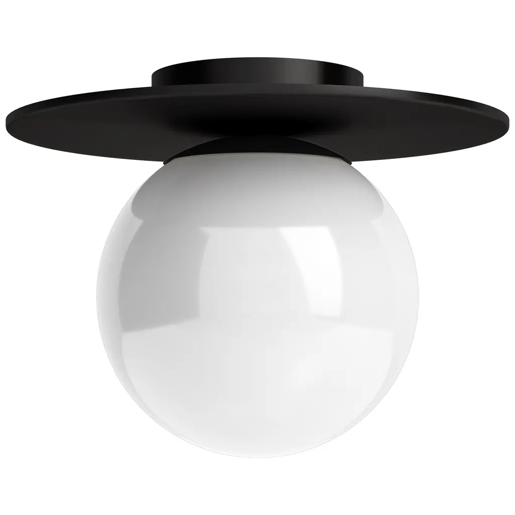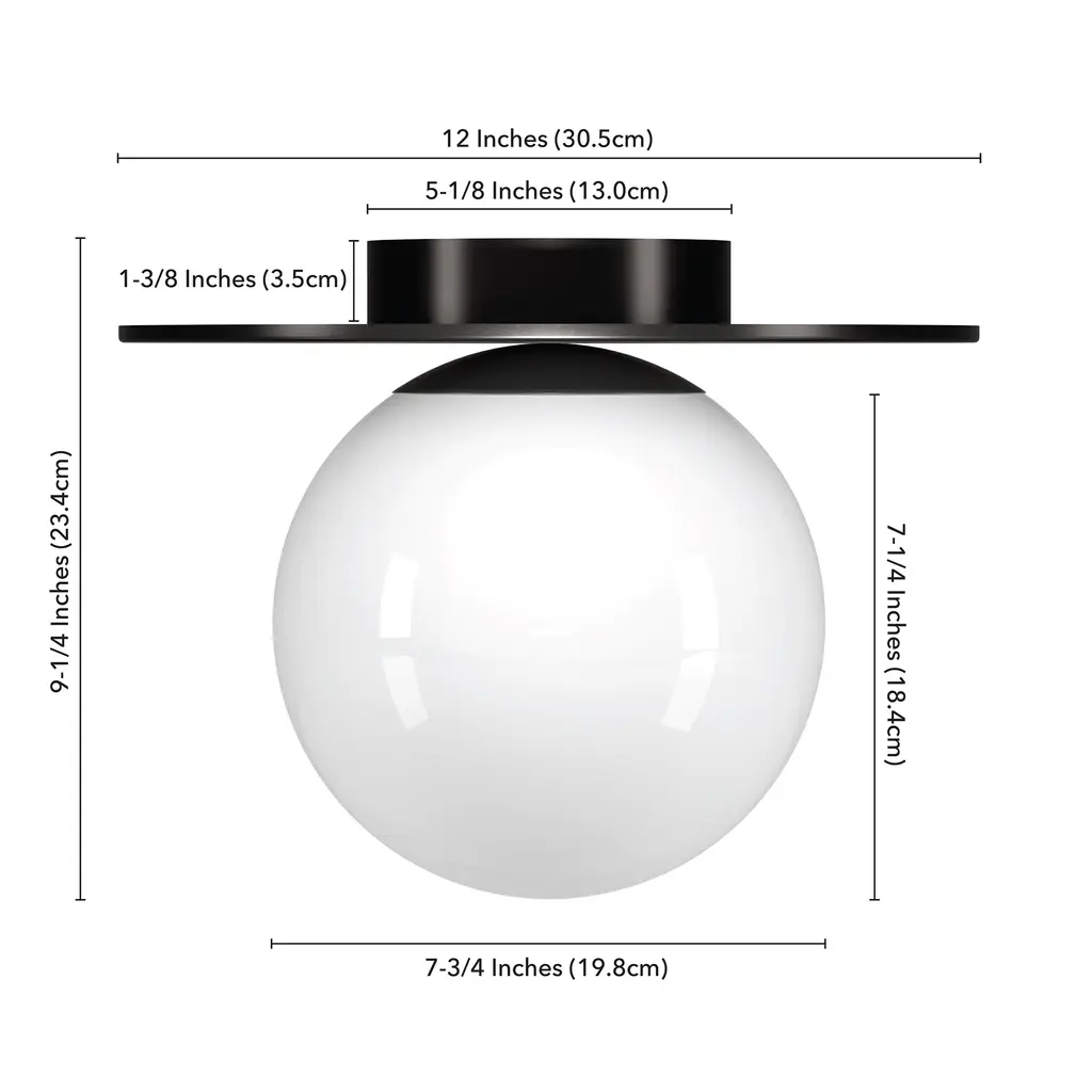 Pairing a modern canopy with a retro-inspired white milk glass globe shade, this flush mount ceiling light creates a classic mid-century look in your entranceway, hallway, or dining room. The enclosed glass shade diffuses light gently throughout your space without a glare. The metallic plate-shaped base artfully offsets the sleek orb, creating a clean on-trend look.