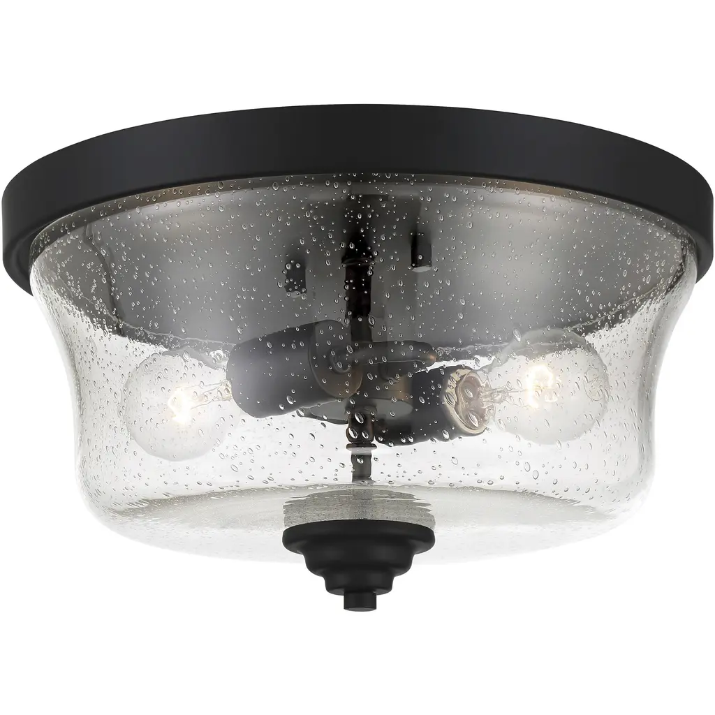 Amon 3 Light 15 Inch Olde Bronze Flush Mount Ceiling Light In Clear Seedy Glass, 5.1