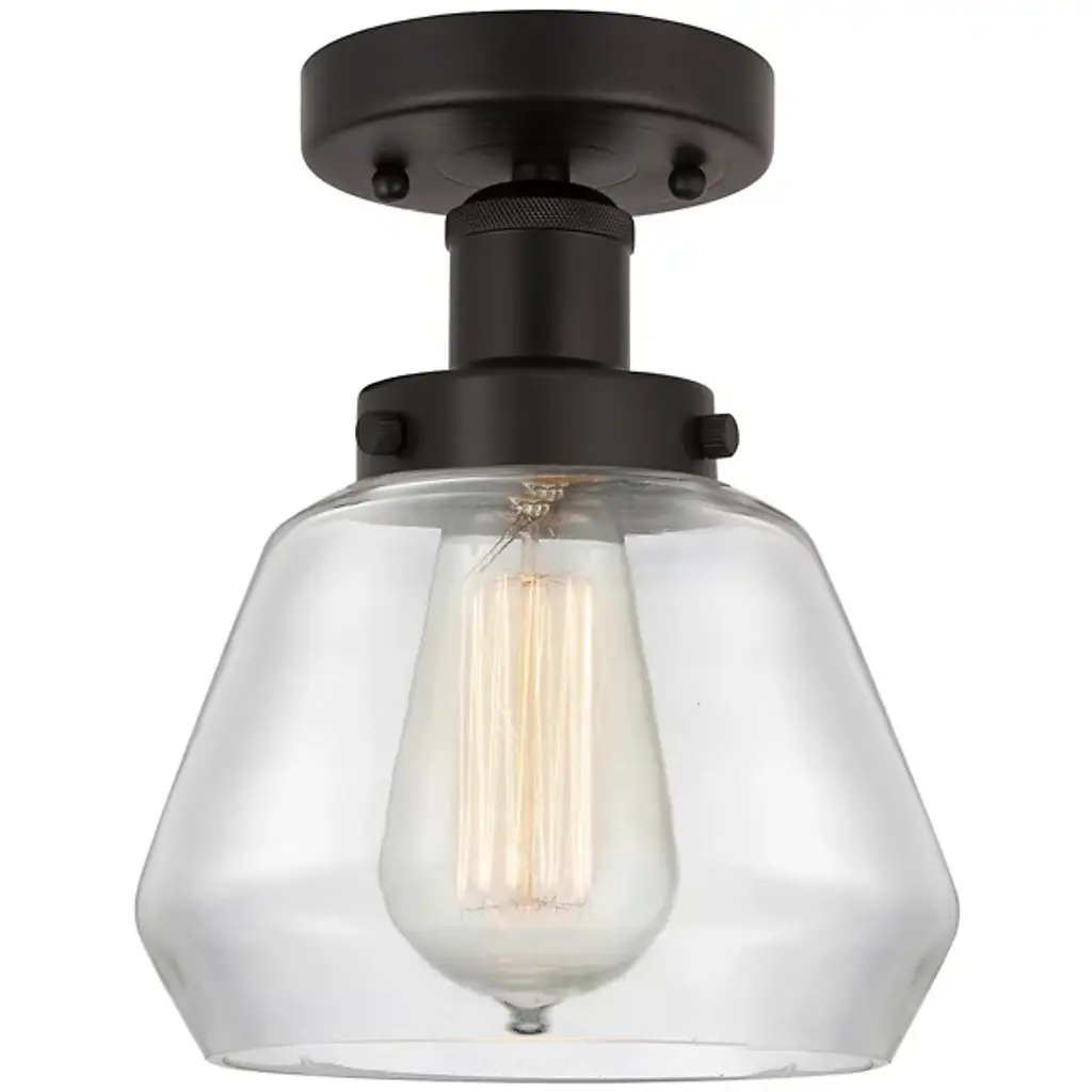 Refined, angular style for modern spaces with lower ceilings. The Andres Flushmount by Alder & Ore has a unique glass shade that flares out smoothly before angling back inward near the bottom, effectively curving itself around the bulb within. A steel canopy and cast brass socket structure add subtle industrial-inspired detailing to the piece. In an entryway, bedroom or bathroom, this flushmount provides abundant ambience as well as an eye-catching element of geometric design.
