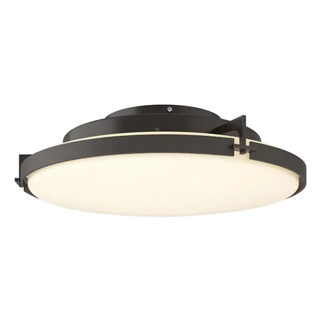 Give movement to light, and you get the eye-catching modern design of the Anello Minor LED Flushmount from Kuzco Lighting. It sets off living rooms or bedrooms with an architectural personality defined by its crisp shapes. Low ceilings can appreciate this design's low-profile structure. Made in metal, the canopy dots the ceiling with a color-filled circular shape. The edges of this shape draw the eyes with their abstract arrangement. Slim metal bands offset each other in tight arches to suggest the feeling of movement. Paired with frosted acrylic diffusers, LEDs follow the inside of the bands. This clean combo enhances the piece's silhouette with a crisp, generous glow.