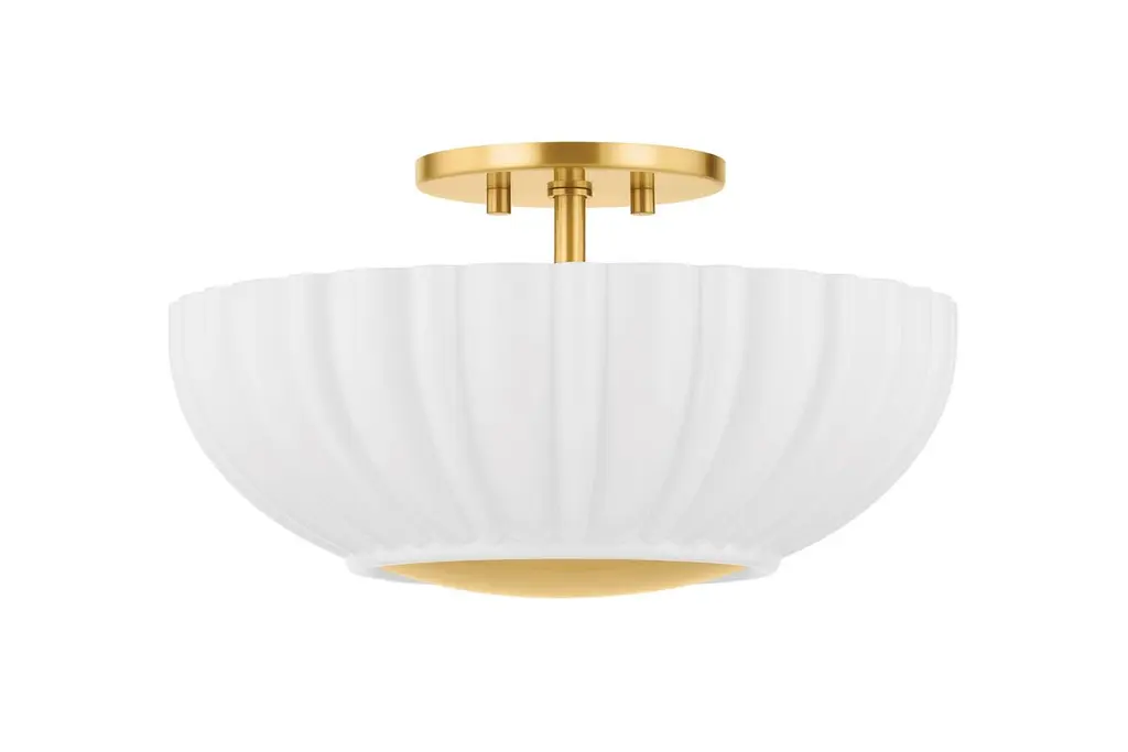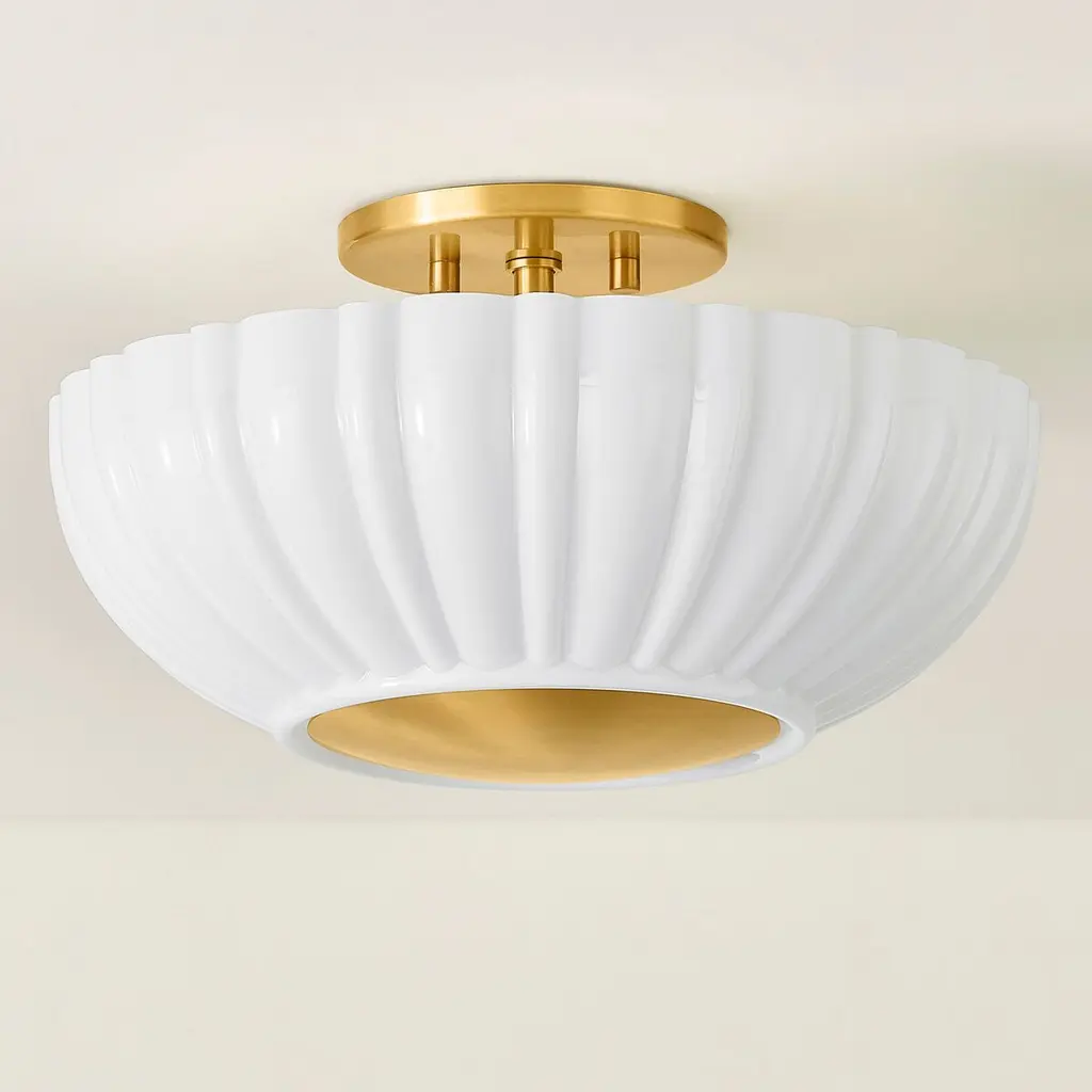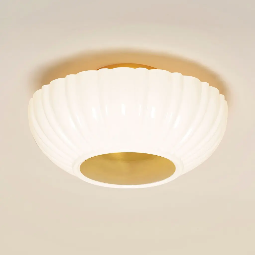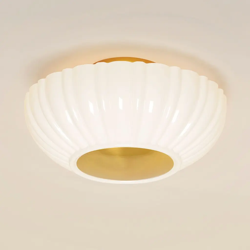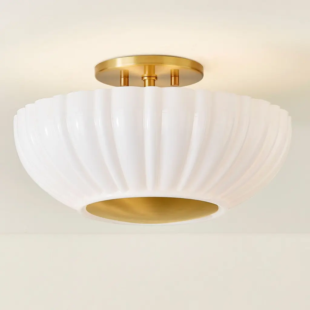 Anne Flush Mount, Shiny Opal Glass/aged Brass