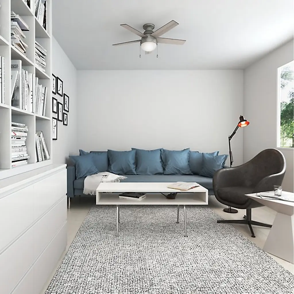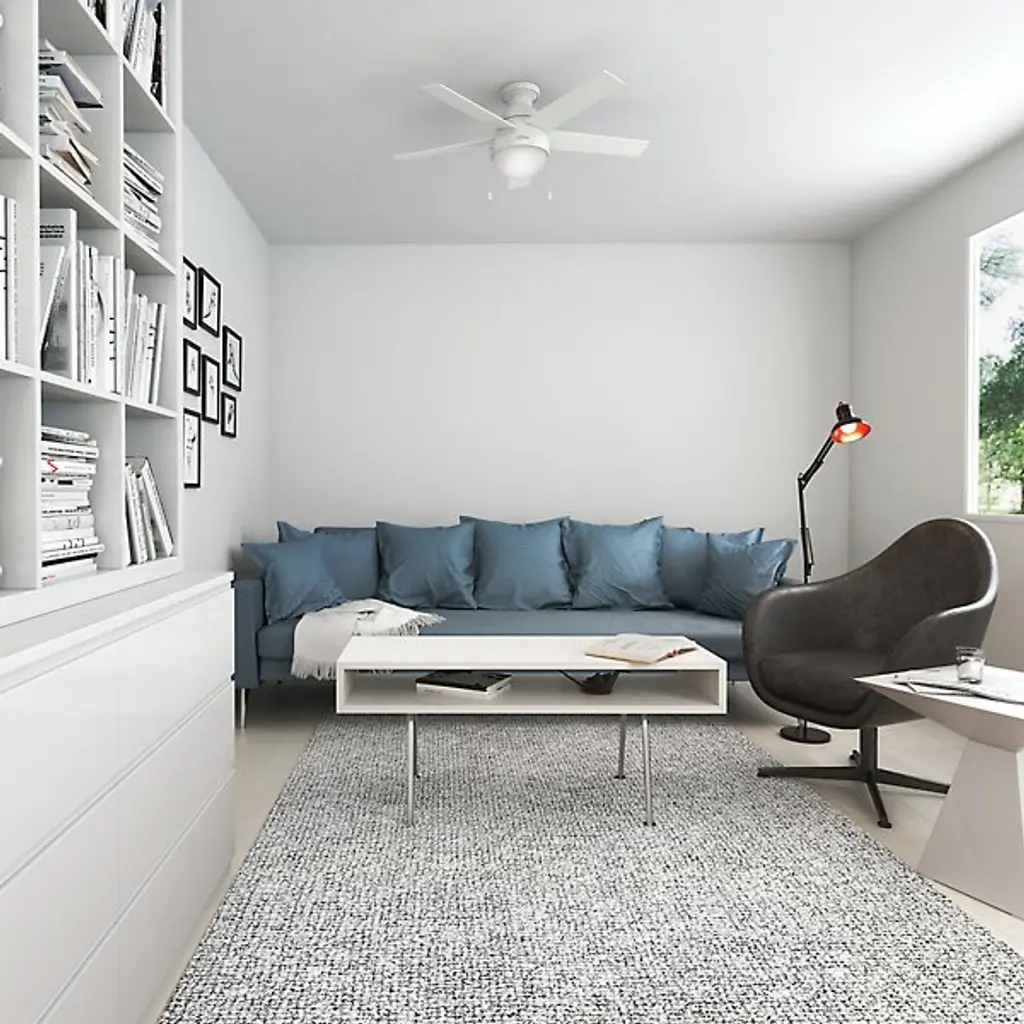 With a cool composition and compact build, the Hunter Fans Anslee Flushmount Ceiling Fan offers ultra-powerful air circulation in small or large spaces, and nearly any interior setting. Featuring the WhisperWind motor, Anslee Flushmount Ceiling Fan delivers whisper-quiet operation to maintain a noiseless environment. The Anslee Flushmount Ceiling Fan includes an integrated, dimmable downlight for added luminance.