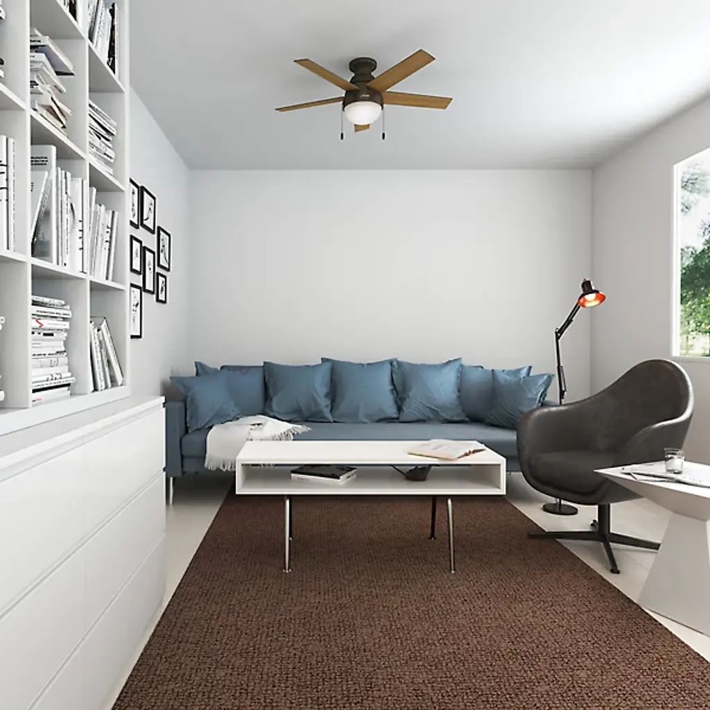 With a cool composition and compact build, the Hunter Fans Anslee Flushmount Ceiling Fan offers ultra-powerful air circulation in small or large spaces, and nearly any interior setting. Featuring the WhisperWind motor, Anslee Flushmount Ceiling Fan delivers whisper-quiet operation to maintain a noiseless environment. The Anslee Flushmount Ceiling Fan includes an integrated, dimmable downlight for added luminance.