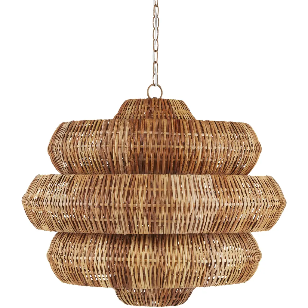 Painstakingly woven by artisans who use traditional techniques, the Antibes Chandelier is an impeccable marriage of artistry and high-quality construction. Natural rattan forms the body of this geometric chandelier, supported by a wrought iron frame that has been treated to a khaki finish. This nine-light fixture will introduce a touch of worldly flavor and a bit of island style into contemporary, transitional or traditional interiors. We also offer a two-light Antibes flush-mount.